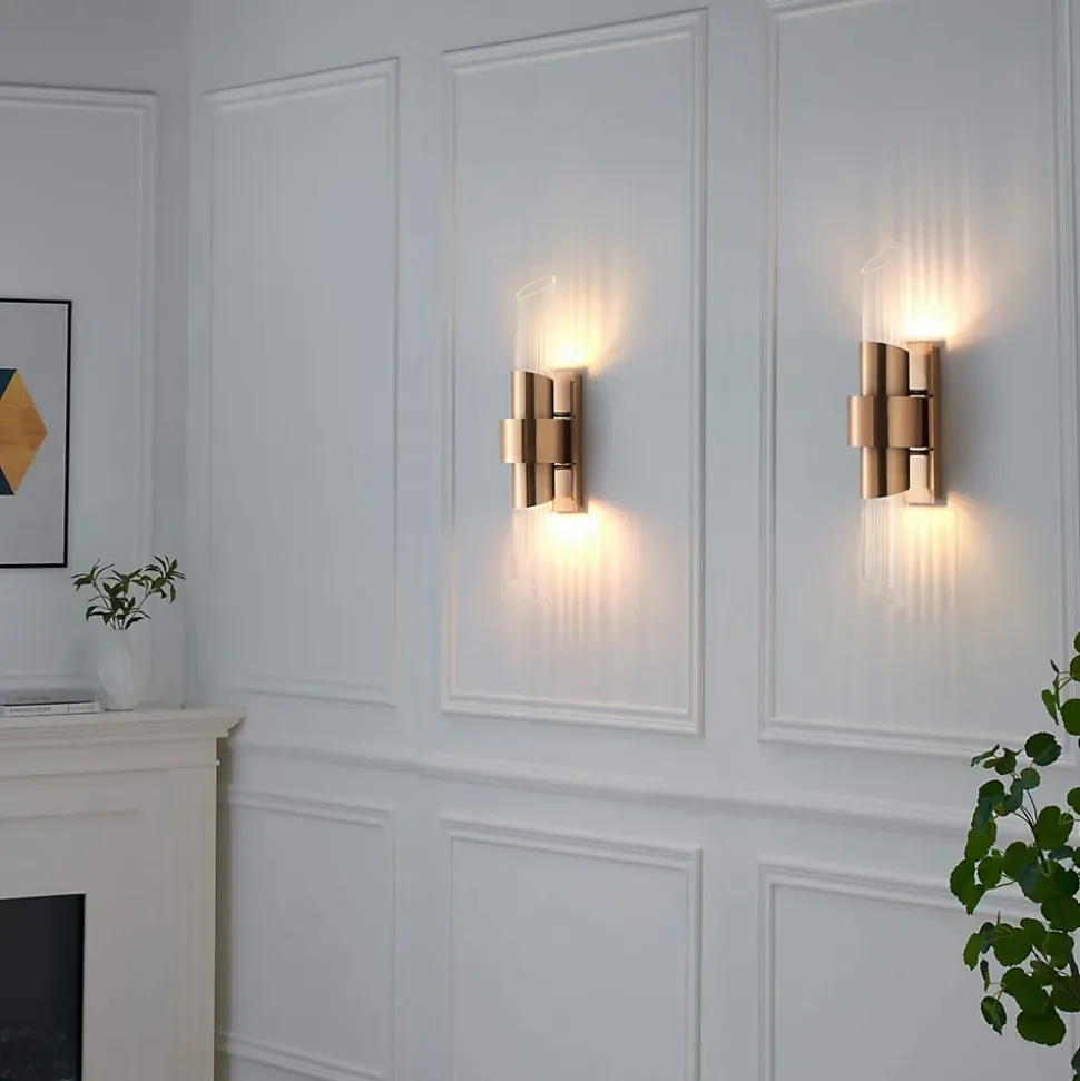 L’applique murale cylindrique Denia est un véritable bijou pour votre décoration intérieure. Son verre délicatement travaillé et sa base en métal couleur laiton ancien évoquent un charme vintage et art déco irrésistible. Avec ses 75 cm de hauteur, elle attire tous les regards. Il vous suffit d’ajouter deux ampoules G9 pour illuminer votre pièce avec élégance. Utilisez-la individuellement pour un impact maximal ou combinez-la avec d’autres luminaires de la même série pour une ambiance cohérente.) Assemblage simple requis (