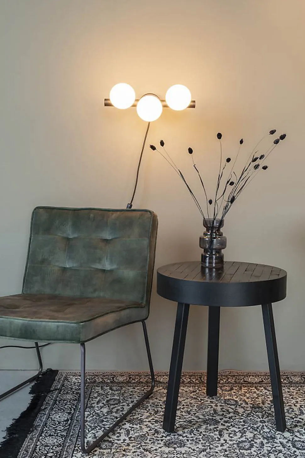 Applique design noir mat 3 boules de verre – Boite à design