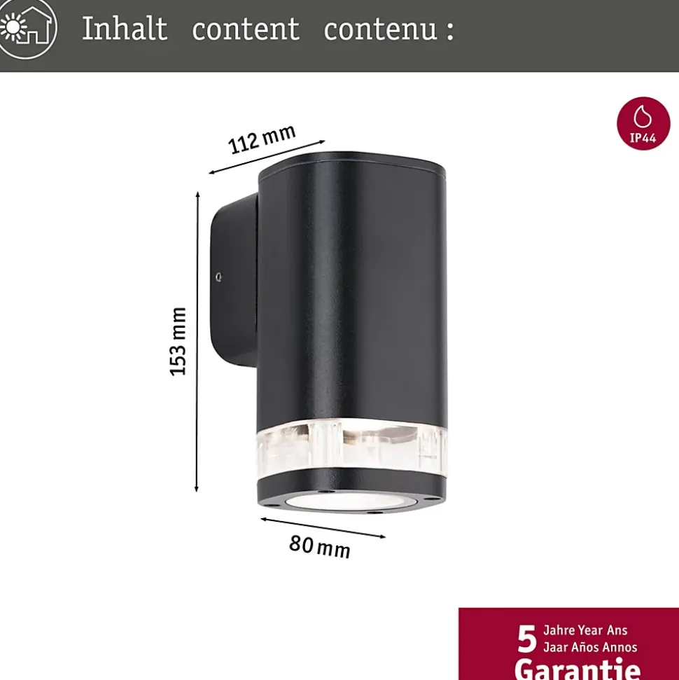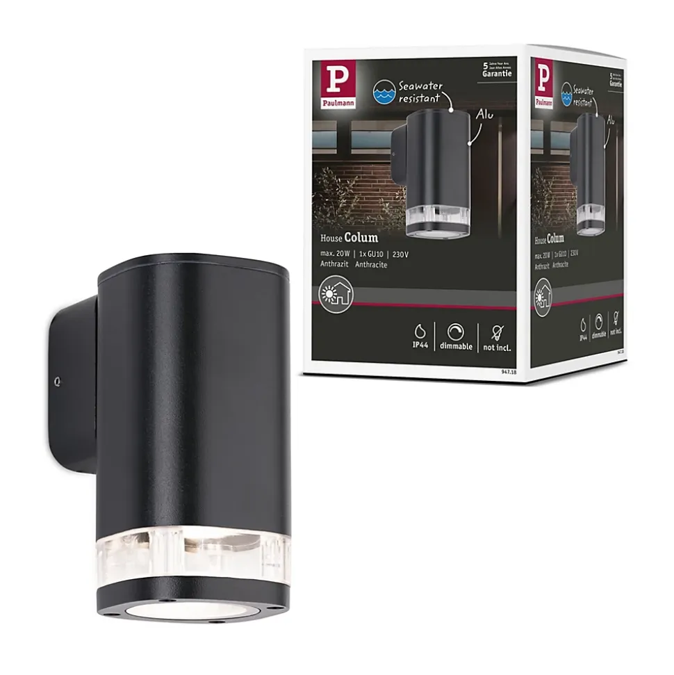 L’applique Colum en Anthracite avec max. 20W est spécialement conçue pour le montage mural. Elle produit des effets lumineux attrayants et améliore votre sécurité en éclairant les murs de la maison ou les entrées. Le choix de l’ampoule est libre. En combinaison avec une ampoule ZigBee, la commande par Smartphone ou tablette est également possible. Selon l’ampoule utilisée, la lampe est dimmable.