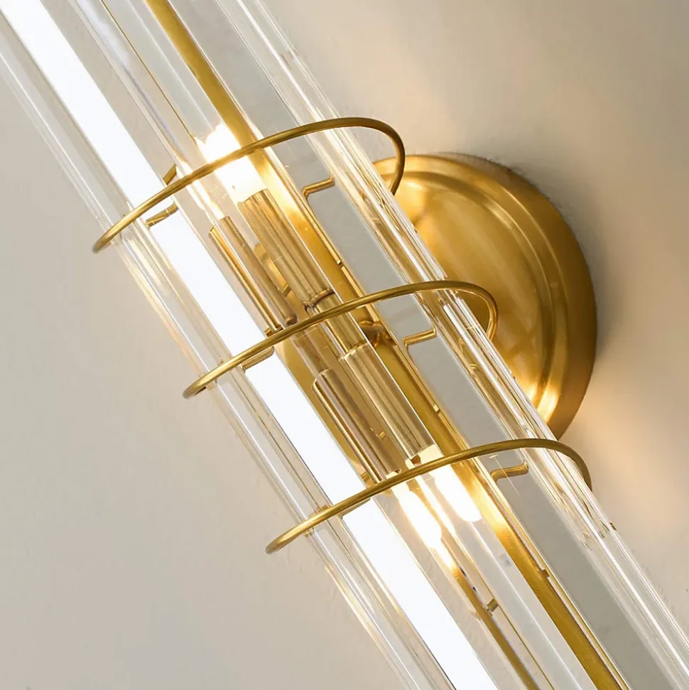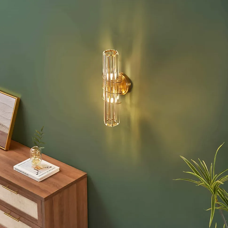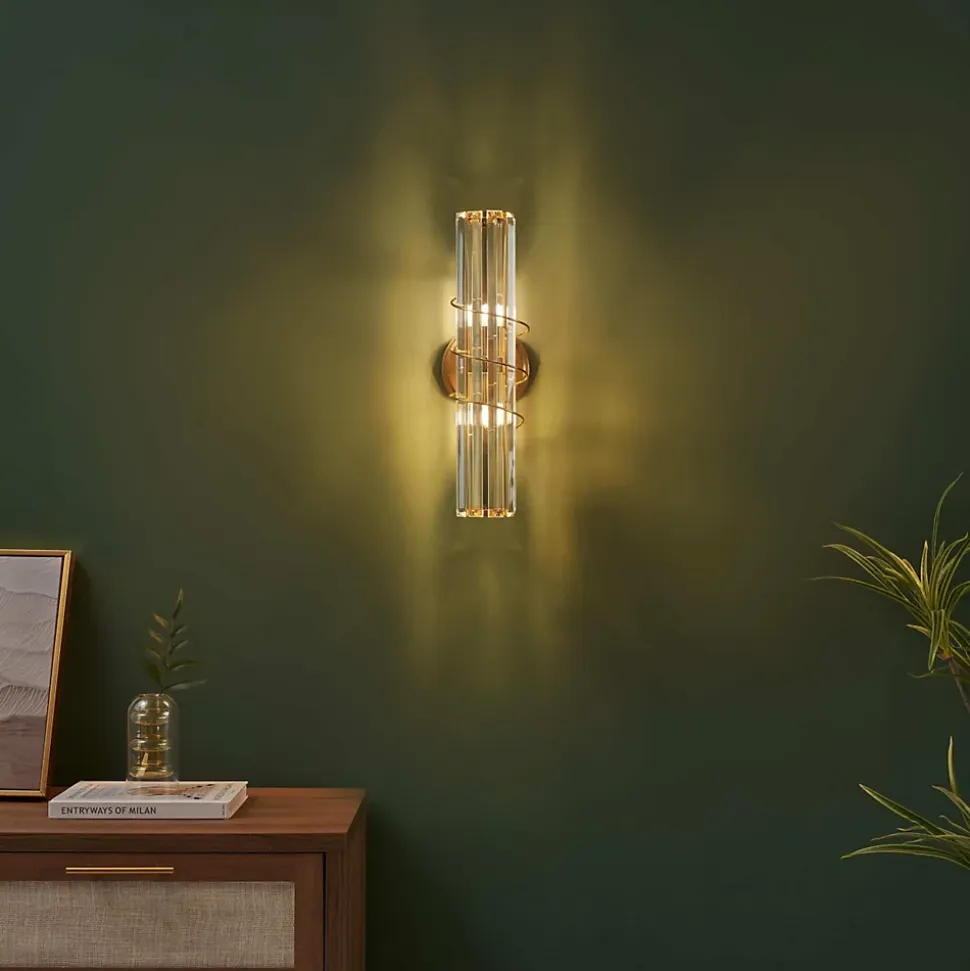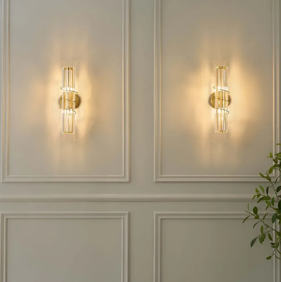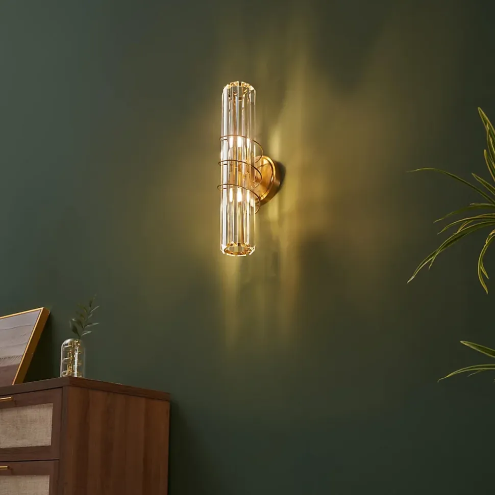 Raffinée et sophistiquée, l’applique Daryna s’élève à 40 cm de hauteur et s’habille de pampilles en verre suspendues à une base dorée. Grâce à deux ampoules G9 (non incluses), elle crée des reflets lumineux enchanteurs, apportant glamour et éclat à votre décoration intérieure.) Assemblage simple requis (