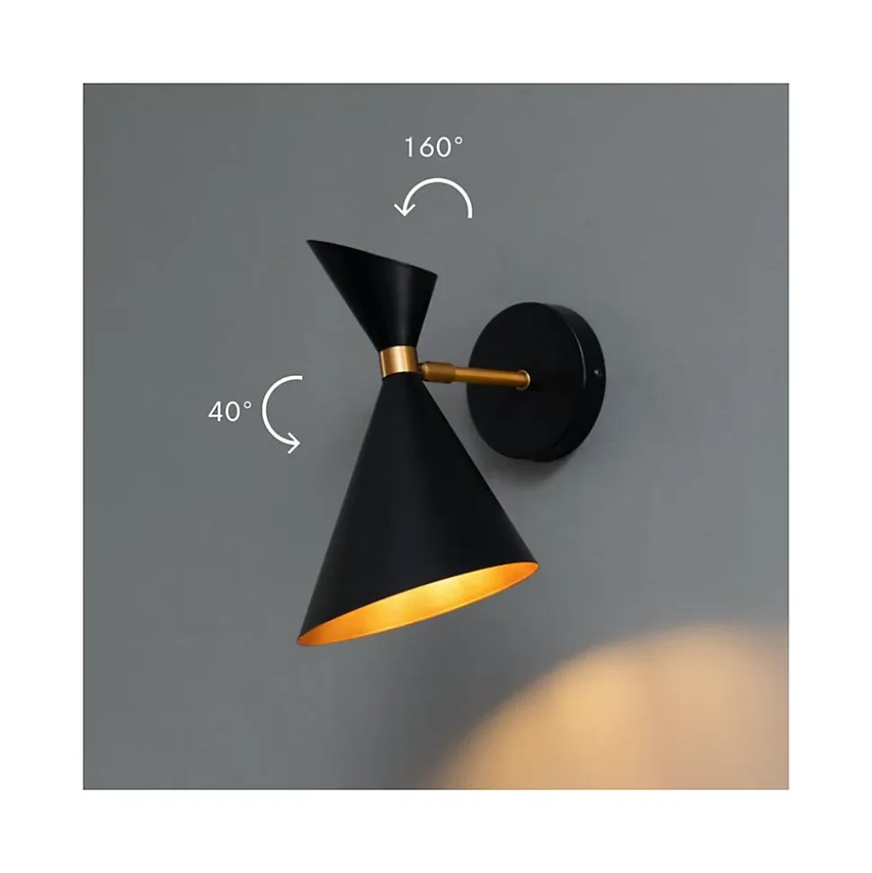 Adoptez le style moderne avec l’applique murale noire Valdivia de 30 cm de diamètre et 30 cm de hauteur. Sa forme de cône originale dissimule astucieusement la source lumineuse, laissant uniquement la lumière agréable se diffuser dans la pièce. Associez-la à une ampoule de culot E27 et privilégiez les LED pour une solution écoénergétique. L’extérieur noir et l’intérieur doré créent un contraste saisissant avec un magnifique jeu d’ombre et de lumière. Découvrez également la suspension de la même collection.) Livré monté, prêt à installer (