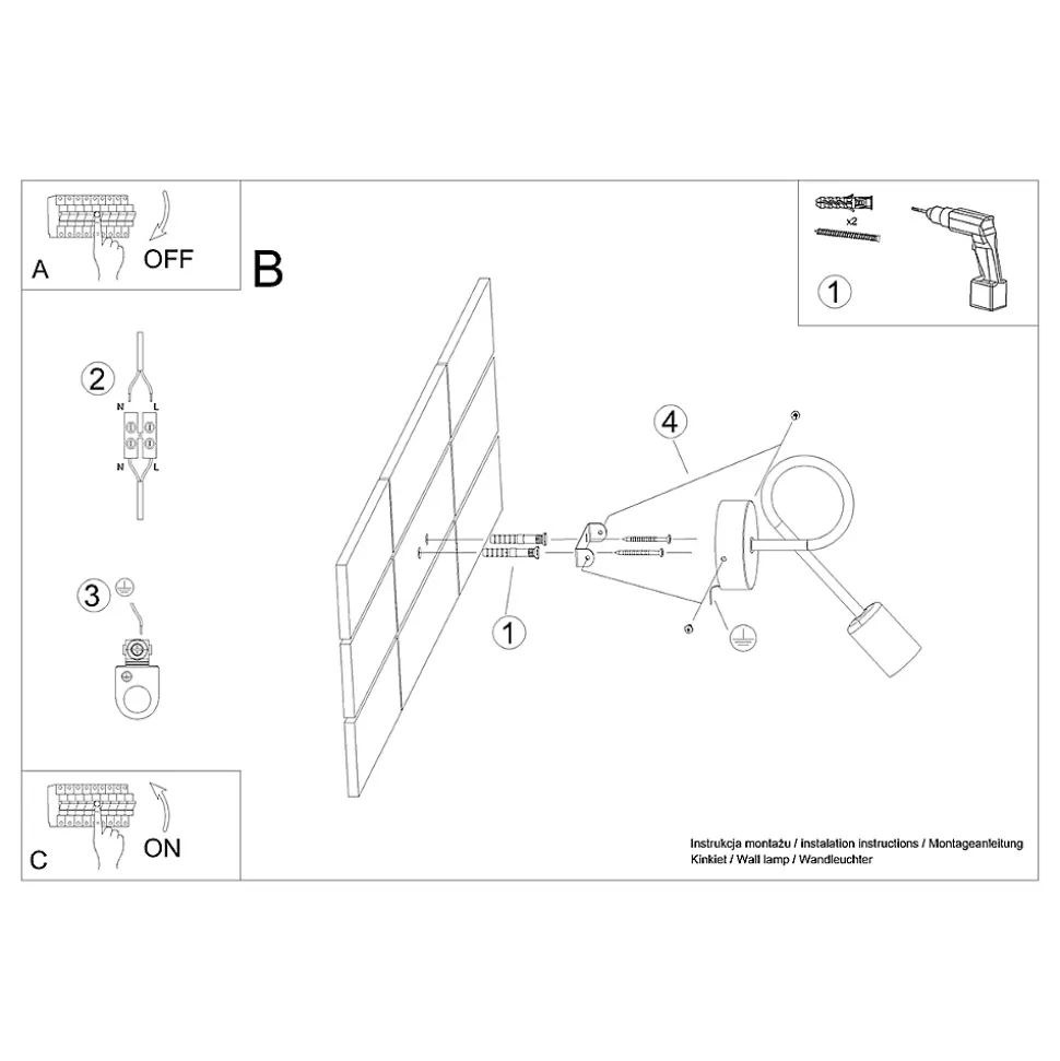 - Source lumineuse : E27, 1x LED max 15W, ~230V, 50Hz, IP20, classe de protection I.