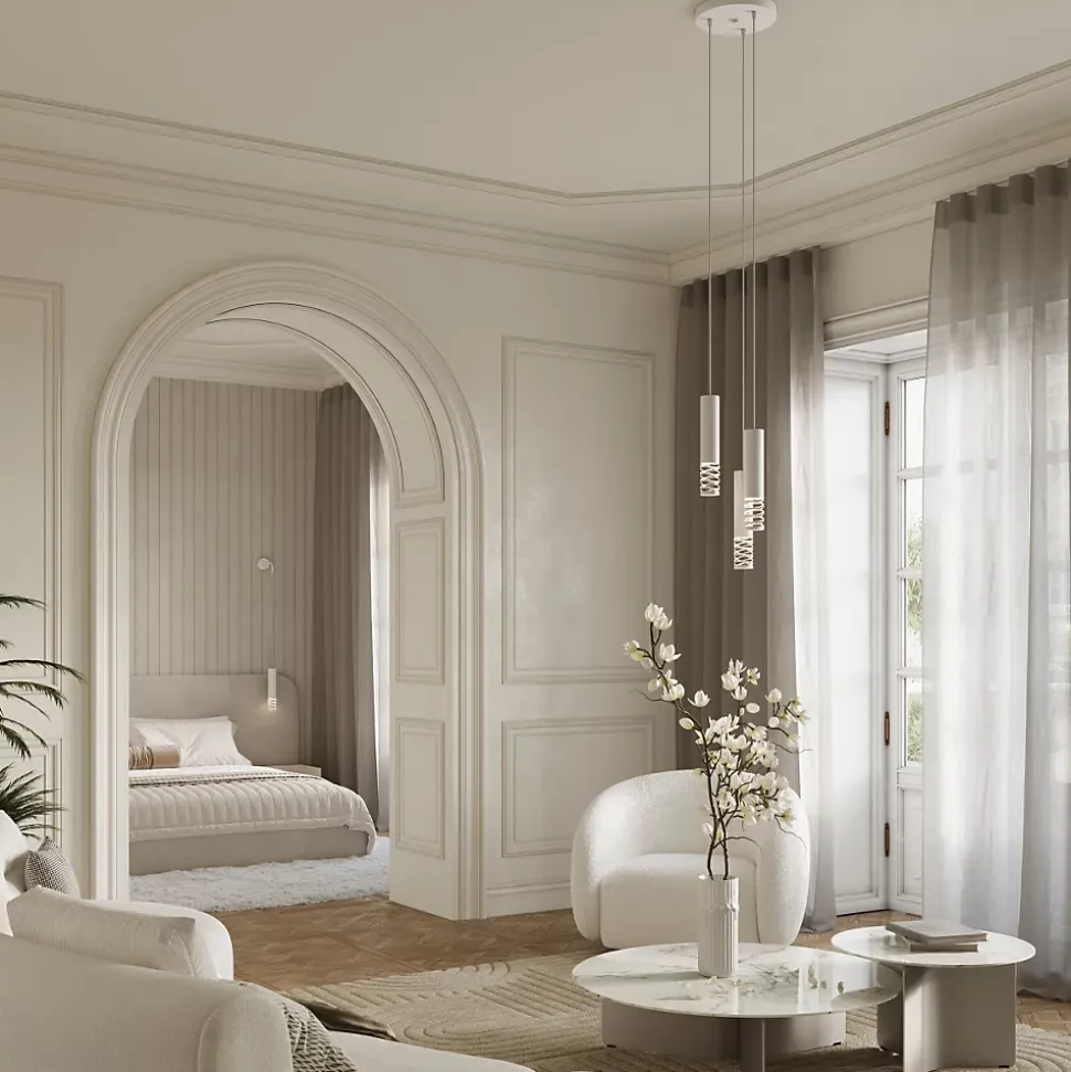LAMI est un luminaire moderne doté d’un abat-jour cylindrique et d’une découpe en spirale décorative. Son design distinctif crée un effet d’éclairage doux et attire l’attention. LAMI est disponible en tant que lampe suspendue – en version simple, double ou triple – et en tant qu’applique murale avec bras, parfaite pour un éclairage d’accentuation dans le salon, la cuisine ou à côté du lit.