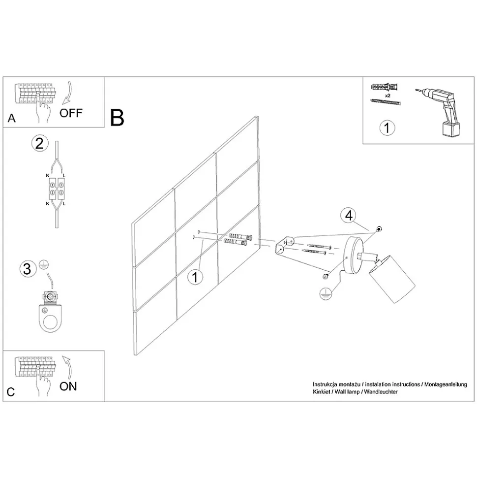 - Source lumineuse : GU10, 1x LED max 10W, ~230V, 50Hz, IP20, classe de protection I.