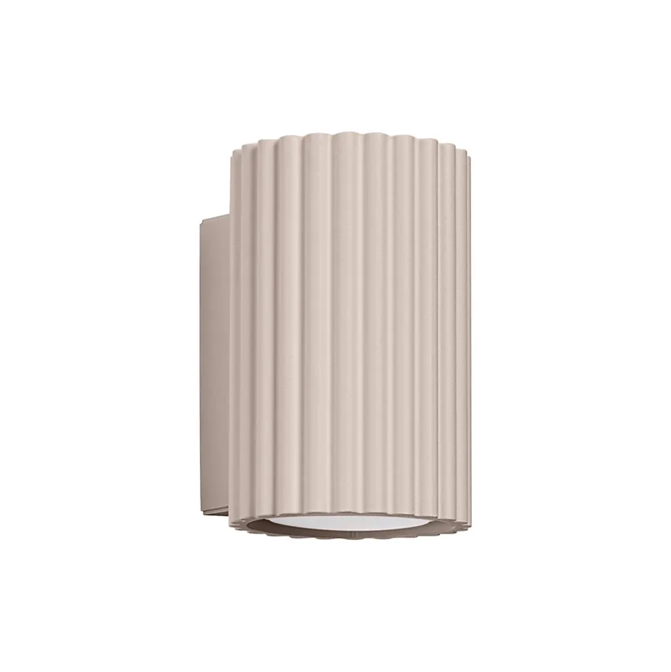 - Style minimaliste, forme tubulaire, couleur taupe