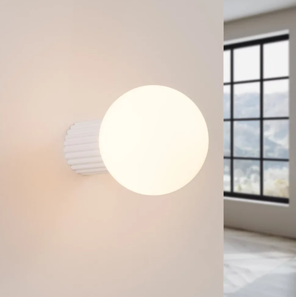 - Lampe HALO : design moderne avec corps cannelé et boule laiteuse.