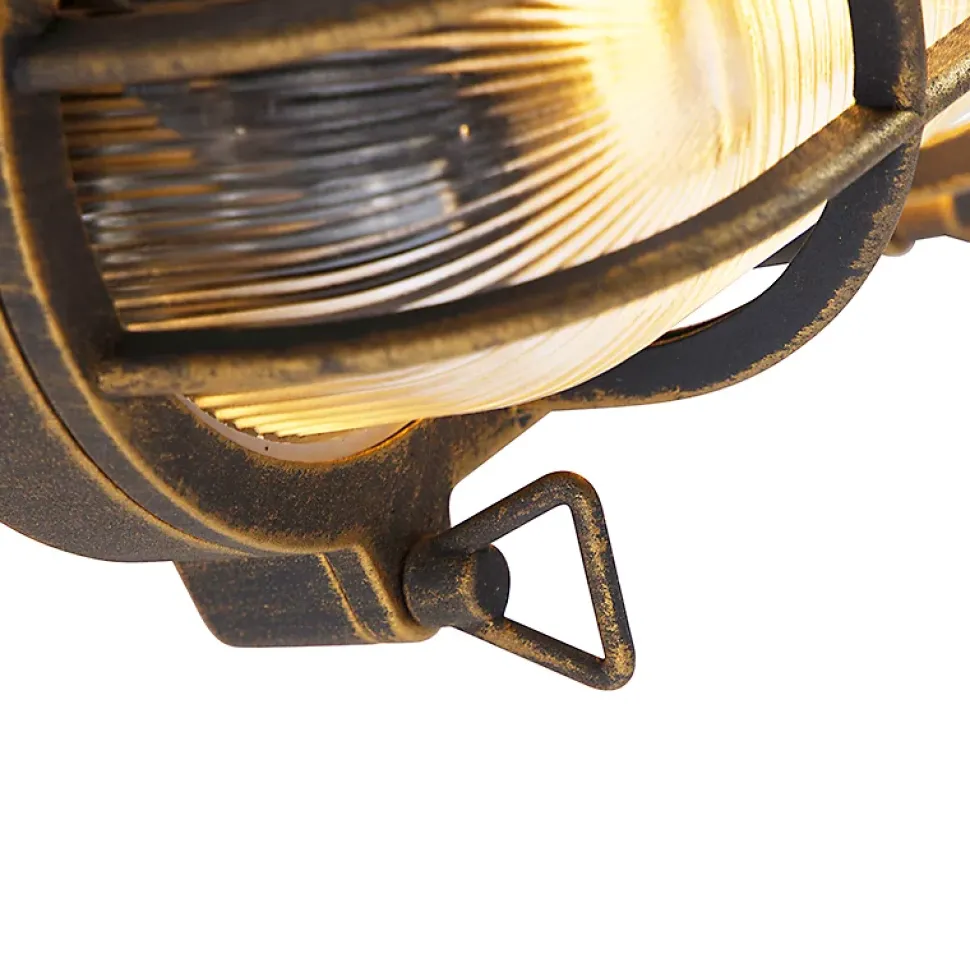 Cette applique et plafonnier à intensité variable de style nautique porte un nom qui en dit long : Noutica. Apportez une ambiance chaleureuse et nostalgique à votre intérieur avec cette lampe de bateau. Son corps en métal lourd or/laiton est doté d’une finition robuste, ce qui lui confère un aspect solide et résistant. Le verre est orné d’un relief qui le sublime et lui donne un effet lumineux particulier. Son format : 10,6 cm de haut, 25 cm de long et 16 cm de large. Sa plaque de montage mesure 2,5 cm de haut, 25 cm de long et 16 cm de large. La lampe possède une douille E27 de grande taille et est livrée sans ampoule, n’oubliez donc pas de commander une ampoule (60W maximum). La luminosité peut être atténuée à l’aide d’un variateur externe, qui n’est toutefois pas inclus. Grâce à son indice de protection IP44, la lampe Noutica peut être installée dans des pièces humides comme la salle de bain, mais aussi à l’extérieur sous la pluie. Optez pour une ambiance industrielle et nostalgique avec cette applique et plafonnier Noutica.