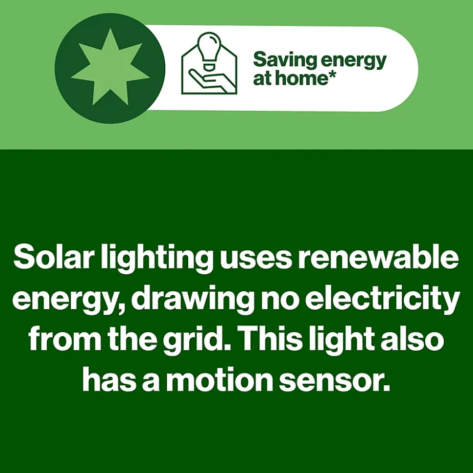 - L’éclairage « solaire » est autonome et ne consomme pas d’électricité du réseau. Ceté clairage est aussi équipé d’un capteur de mouvement. Plus d’informations sur castorama.fr/green-star