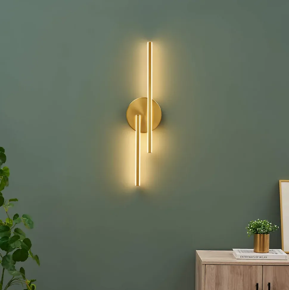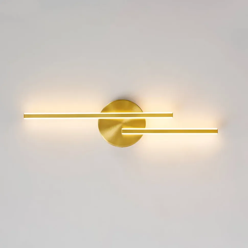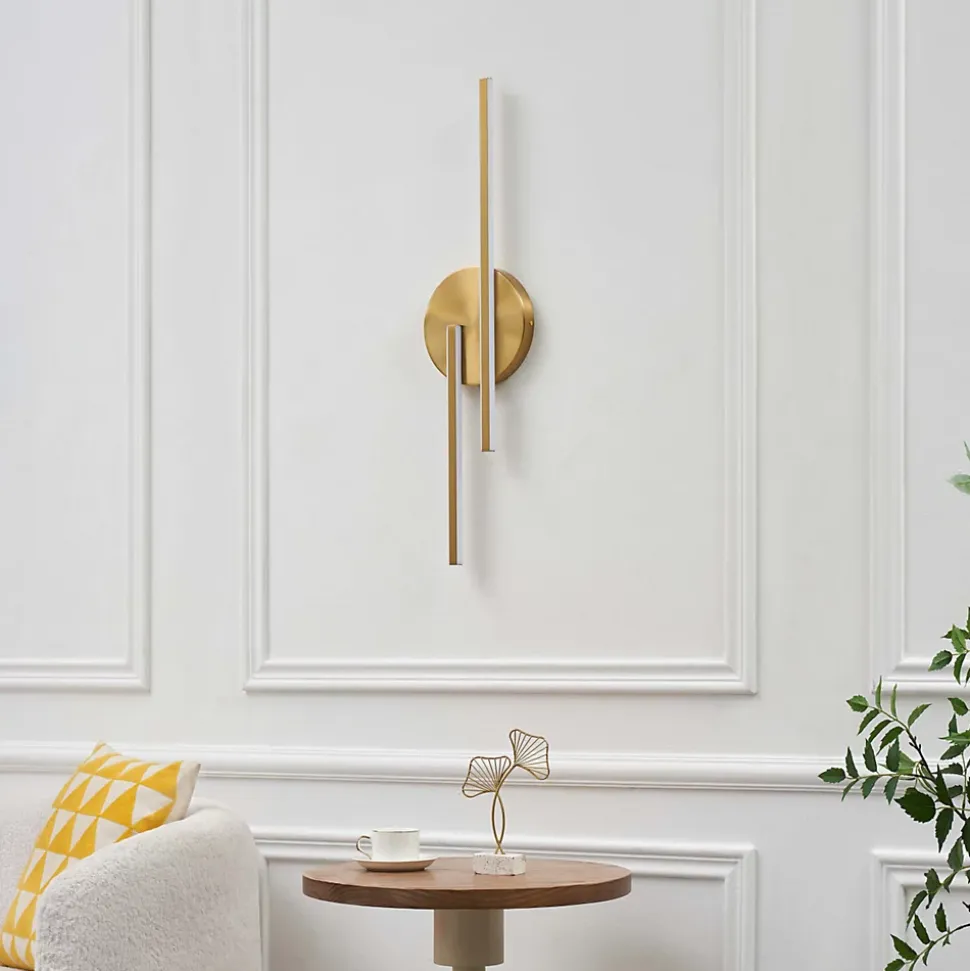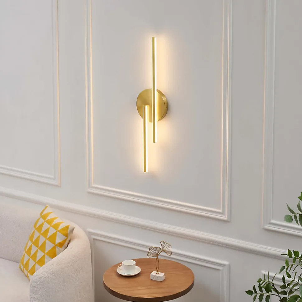 Avec ses 80 cm de longueur, l’applique minimaliste Pia se distingue par sa finition dorée raffinée. Son éclairage indirect, diffusant une lumière douce à 3000K, crée une ambiance chaleureuse. Sa silhouette longiligne et géométrique habille joliment le mur, ajoutant une touche décorative tout en illuminant l’espace.) Livré monté, prêt à installer (