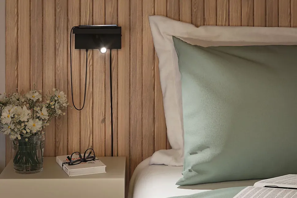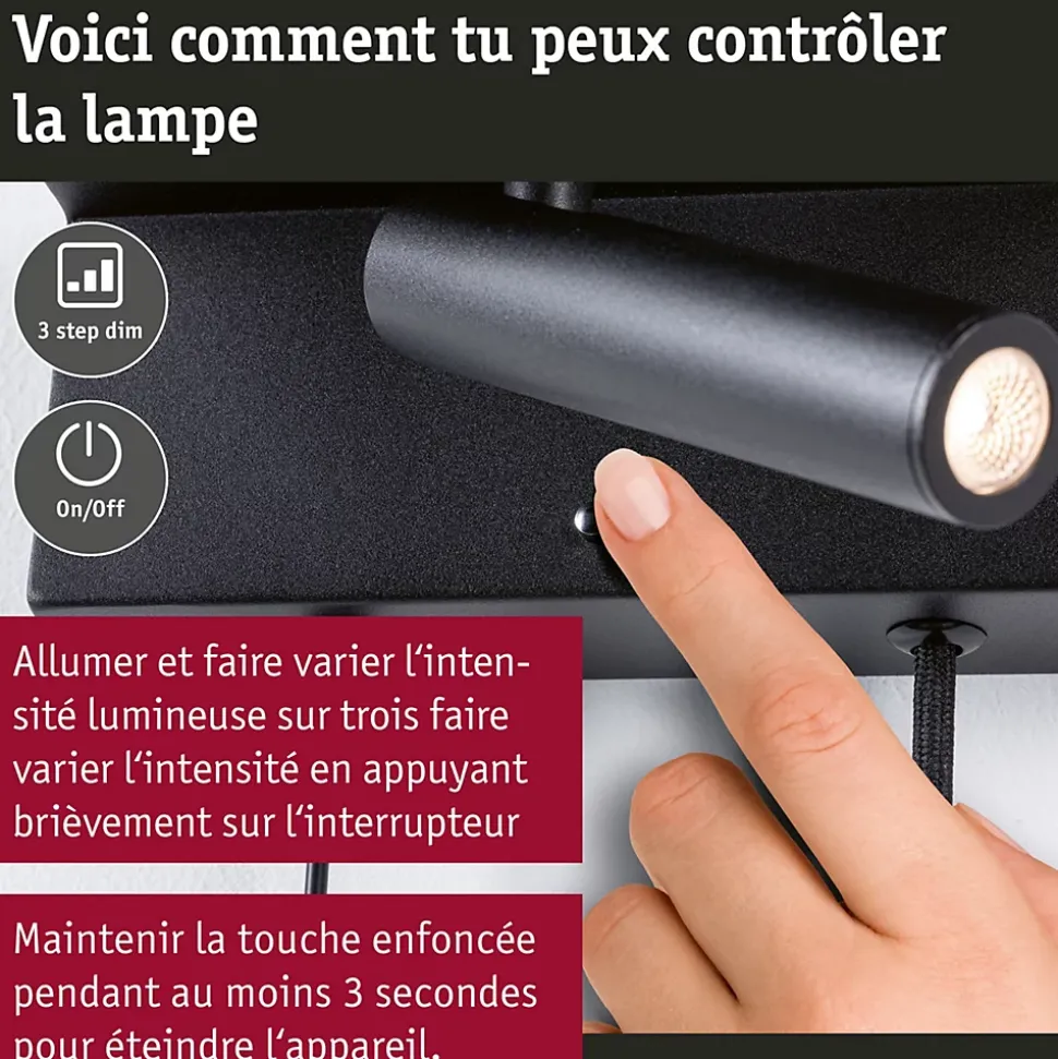 Convient parfaitement comme lampe de lecture à côté du lit|Tête de lampe orientable pour un éclairage ponctuel|Prise USB Type-C incluse pour un chargement rapide (Puissance de charge de 10 watts)|Température de couleur : 3000K – blanc chaud|3 niveaux de luminosité|Ampoules LED également fournies|Prêt à brancher avec un câble textile haut de gamme (longueur 1,20 m)|Technique LED efficace