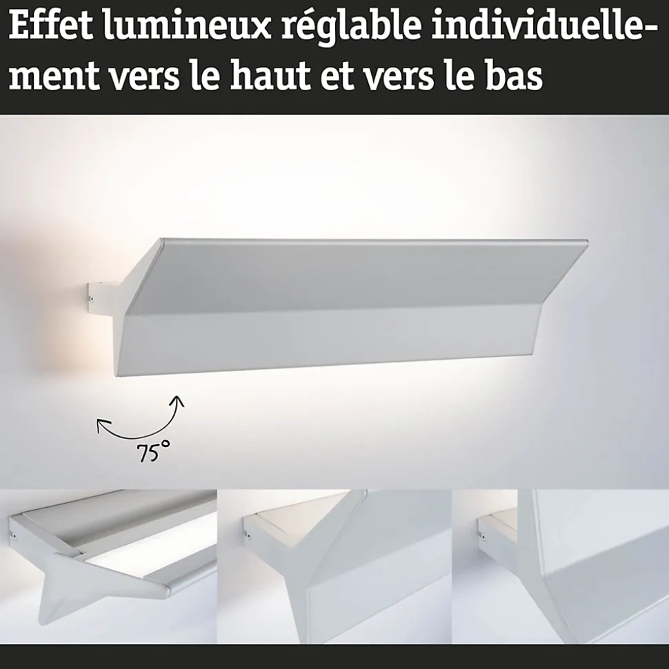 Éclairage d’appoint indirect agréable dans le salon, accroche regard dans l’entrée et zone lumineuse d’ambiance, dans le salon pour illuminer les tableaux. L’applique gradable Stine en Blanc dépoli et d’une longueur de 55 cm sublime les murs avec ses effets lumineux décoratifs. Fort de son design moderne, ce luminaire s’intègre dans les styles d’intérieurs les plus divers. Les effets lumineux sont personnalisables grâce à l’orientation du cache. 3 niveaux de luminosité sont proposés que l’on sélectionne grâce à l’interrupteur tactile latéral qui permet également d’allumer ou d’éteindre le luminaire. La fonction mémoire incluse enregistre la dernière température de couleur activée. Le luminaire éclaire de manière homogène vers le haut et vers le bas grâce au verre diffuseur structuré.