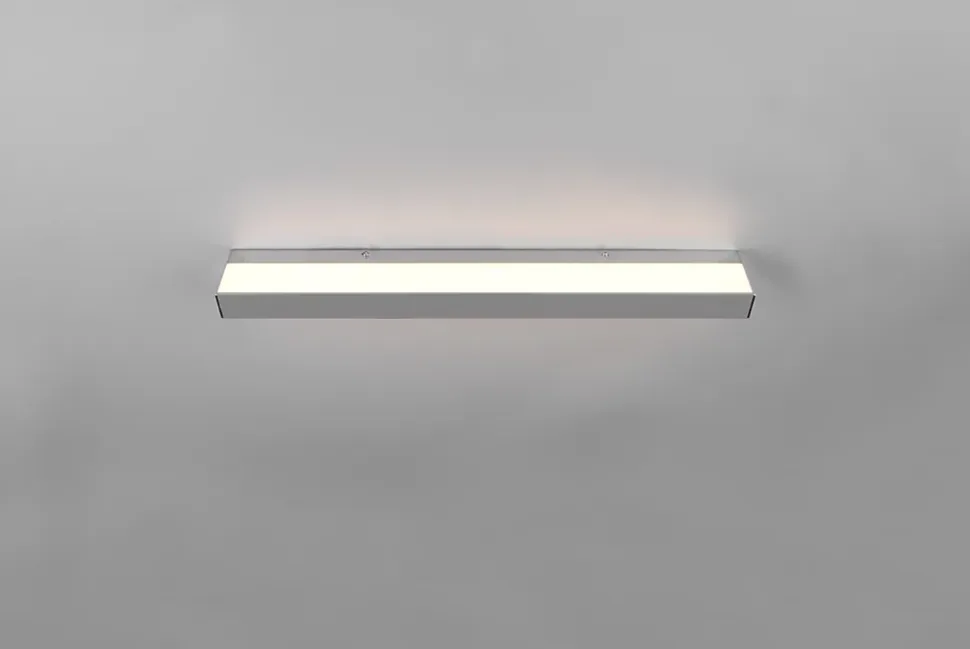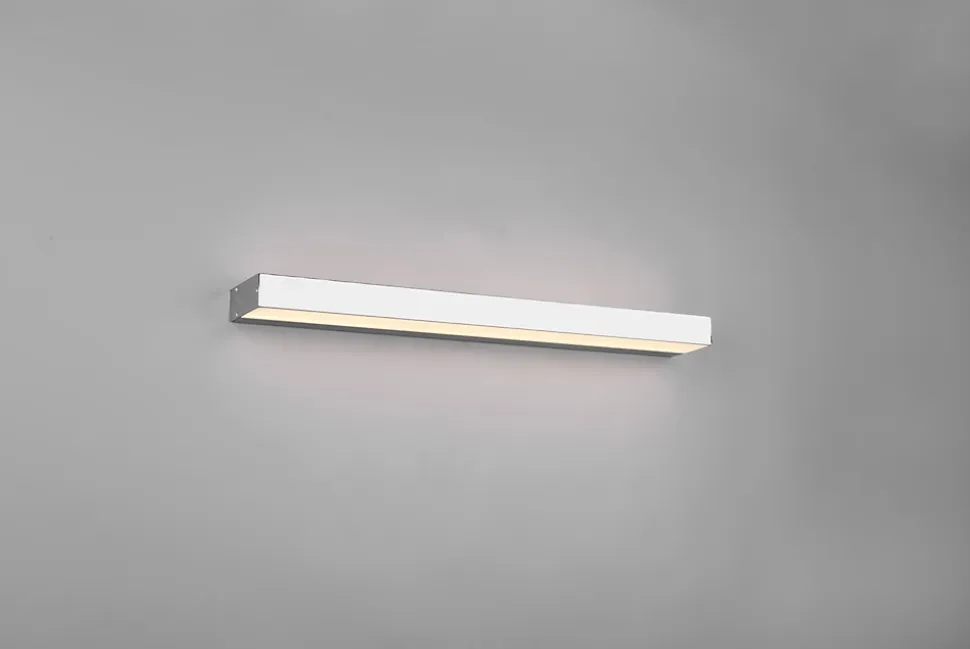 Les caractéristiques techniquesL’applique Rocco de Trio allie modernité et efficacité avec sa technologie LED SMD intégrée de 8 watts. Cette source lumineuse offre un flux lumineux de 800 lumens avec une température chaude de 3000K, parfaite pour créer une atmosphère douce et reposante.Grâce à sa classification IP44, elle est parfaitement adaptée aux pièces humides comme la salle de bains, assurant une protection fiable contre les éclaboussures d’eau. Son corps en aluminium chromé et son diffuseur en acrylique blanc lui confèrent robustesse et élégance.Les avantages esthétiquesLe design épuré et minimaliste de la Rocco met l’accent sur un éclairage vers le haut et le bas qui sublime vos murs en diffusant une lumière agréable et enveloppante.Son fini chromé discret s’harmonise facilement avec tous les styles de mobilier, apportant une touche contemporaine et raffinée à votre salle de bains ou couloir.Cet éclairage intelligent ne se contente pas d’embellir votre espace : il vous permet également de réaliser jusqu’à 80 % d’économies d’énergie par rapport aux ampoules halogènes traditionnelles, tout en offrant une durée de vie exceptionnelle et une faible émission de chaleur.Avec l’applique Rocco, misez sur une ambiance lumineuse unique, moderne et durable qui saura transformer votre intérieur.