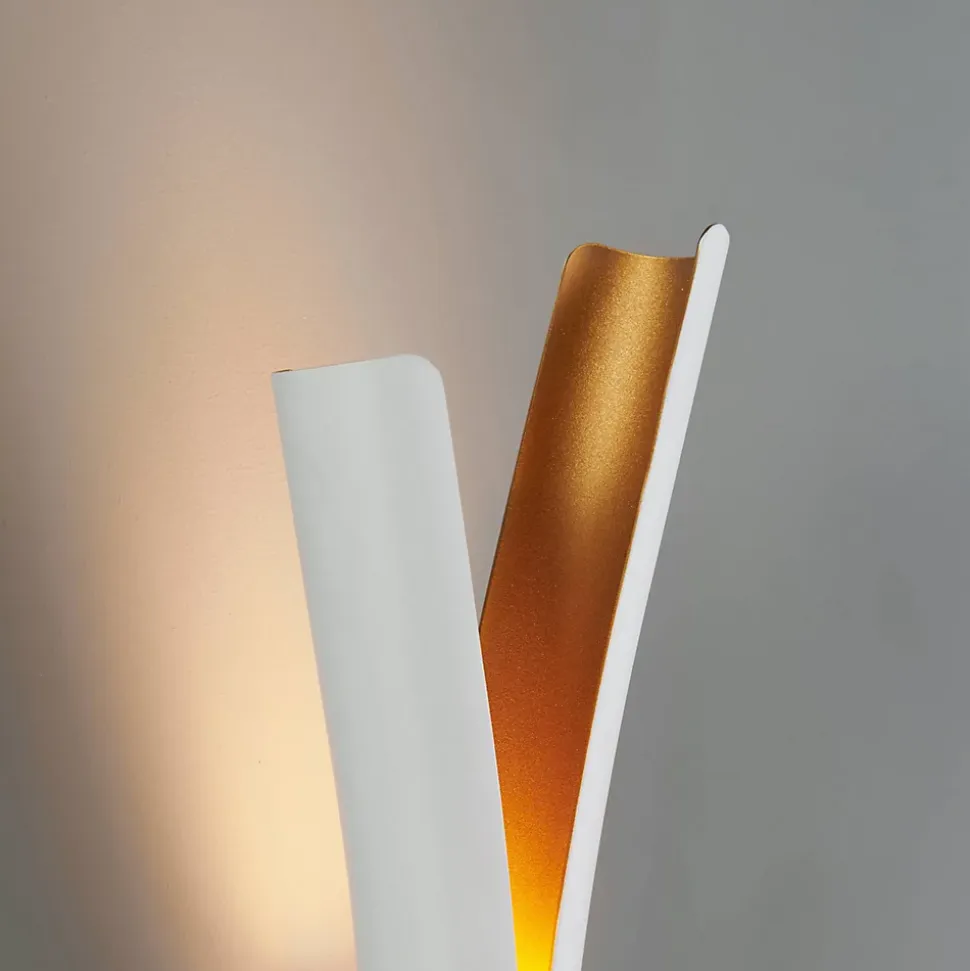 Avec son design unique en forme de Y, l’applique murale Nelia offre deux points lumineux dirigés vers le haut et le bas pour un éclairage subtil et élégant. Son extérieur blanc et son intérieur doré créent un contraste saisissant, ajoutant une touche de raffinement à votre décoration intérieure. La forme ouverte de Nelia assure une diffusion optimale de la lumière, tandis que les LED intégrées, alimentées par un petit transformateur dans le socle en aluminium de qualité, garantissent une luminosité efficace et durable. Explorez également la version noire de Nelia pour une alternative audacieuse.) Livré monté, prêt à installer (