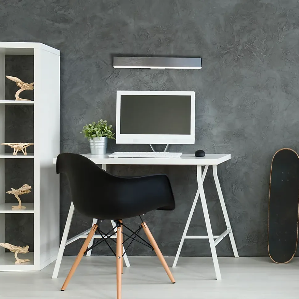 Cette applique murale de la collection DUBAI n’est pas seulement fonctionnelle, elle est aussi un véritable point fort pour tout aménagement d’intérieur. Une applique murale permet de mettre merveilleusement en valeur certaines zones ou objets de la pièce. Vous pouvez mettre en valeur des œuvres d’art, des détails architecturaux ou des meubles particuliers, ce qui crée un intérêt visuel et une profondeur. Mais il est également possible d’éclairer un couloir de manière élégante. Un aspect réduit et une forme anguleuse font de ce luminaire de style moderne un élément indispensable pour tous ceux qui apprécient un aménagement harmonieux. Le luminaire en métal et en plastique chromé attire immédiatement le regard. La combinaison de la structure brossée et de l’abat-jour clair crée une image d’ensemble cohérente. L’applique mesure 45 cm de long, 7 cm de large et 5,5 cm de haut. Avec une applique équipée de 1 LED sur 1 platine LED, vous apportez de la lumière dans l’obscurité. Le design séduit par l’intégration complète de l’éclairage. Ce luminaire correspond à la classe 2. Une tension de réseau de 220-240V ~ 50Hz est nécessaire pour le fonctionnement sur secteur de cet appareil. Ce luminaire de 19 watts a une intensité lumineuse de 1000 lumens et une température de lumière de 3000 kelvins. Donnez à votre maison l’ambiance lumineuse parfaite avec notre applique murale de haute qualité et profitez du confort et du style dans chaque pièce.
