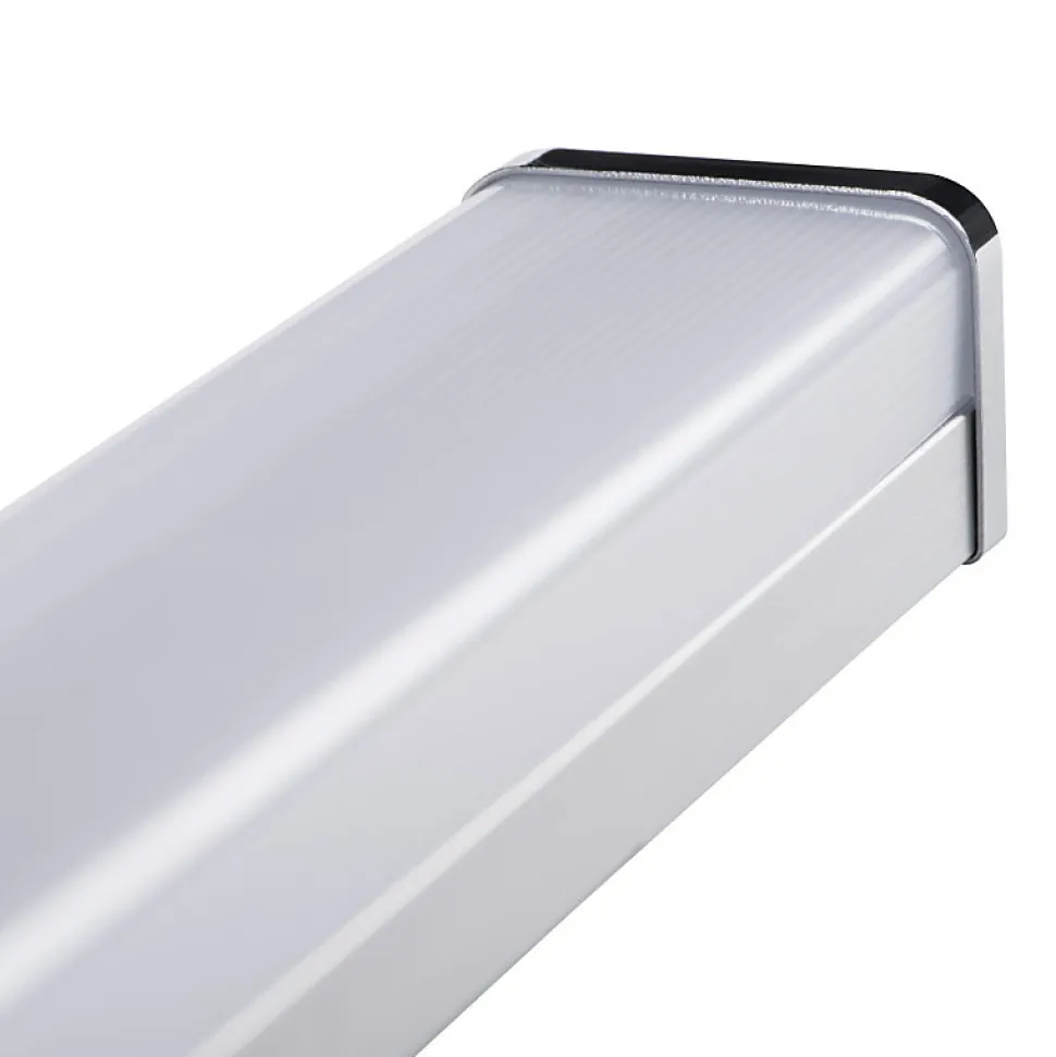 Caractéristiques techniquesCette applique murale étanche est en métal chromé et polycarbonate.Elle diffuse une lumière blanc neutre. Sa puissance d’éclairage est de 660 lumens pour seulement 8 watts de consommation pour la version 40 cm, 1010 lumens pour 12 watts pour la version 60 cm et 1340 lumens pour 15 watts pour la version 90 cm.Elle est étanche (IP44).Avantages esthétiquesL’Applique Led IP44 Asten convient particulièrement à des pièces à degré d’humidité élevé (cuisine – salle de bain).Cependant, vous pourrez également installer l’Applique Asten dans toute autre pièce de votre maison (salon, chambre, dressing).Elle peut mettre en valeur des tableaux ou éléments décoratifs, éclairer un plan de travail ou assurer un éclairage efficace au-dessus d’un miroir.Elle diffuse une lumière blanc neutre (4000 K) identique à la lumière du jour ce qui la rend idéale pour des pièces où vous avez besoin d’un rendu optimal des couleurs (maquilage, préparations culinaires, mise en valeur d’une oeuvre d’art).L’esthétique épurée de cette applique vous permettra de l’installer dans tout style d’intérieur.Elle existe en version 8 W, 12 W et 15 W et en noir .