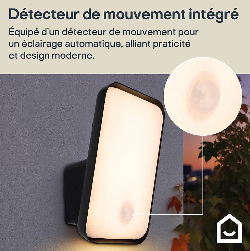 - Ce luminaire est équipé d’un détecteur de mouvement qui active l’éclairage dès qu’un mouvement est perçu, pour une meilleure visibilité et une sécurité accrue