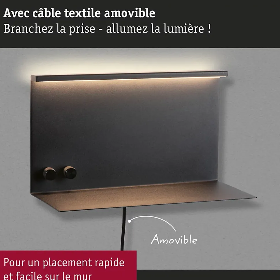 La liseuse murale Jarina en noir mat avec étagère et fonction de chargement intégrées est multifonctionnelle et allie technologie de pointe et élégance. Elle convient à merveille comme éclairage supplémentaire et éclairage de lecture dans les séjours et les chambres ainsi que dans les couloirs et les cuisines, sans oublier les salles de bain. L’éclairage direct et l’éclairage indirect peuvent être activés séparément. Le luminaire dispose de plus d’une petite tablette et d’une prise de recharge USB-C conforme aux standards européens les plus récents pour une recharge rapide. Avec son éclairage blanc chaud, ce luminaire assure une ambiance lumineuse chaleureuse Grâce au câble textile de 1,20 m de long doté d’une fiche, le montage est simplissime. Il suffit d’avoir une prise à proximité. Un raccordement direct à la sortie de courant est également possible grâce au câble textile amovible.
