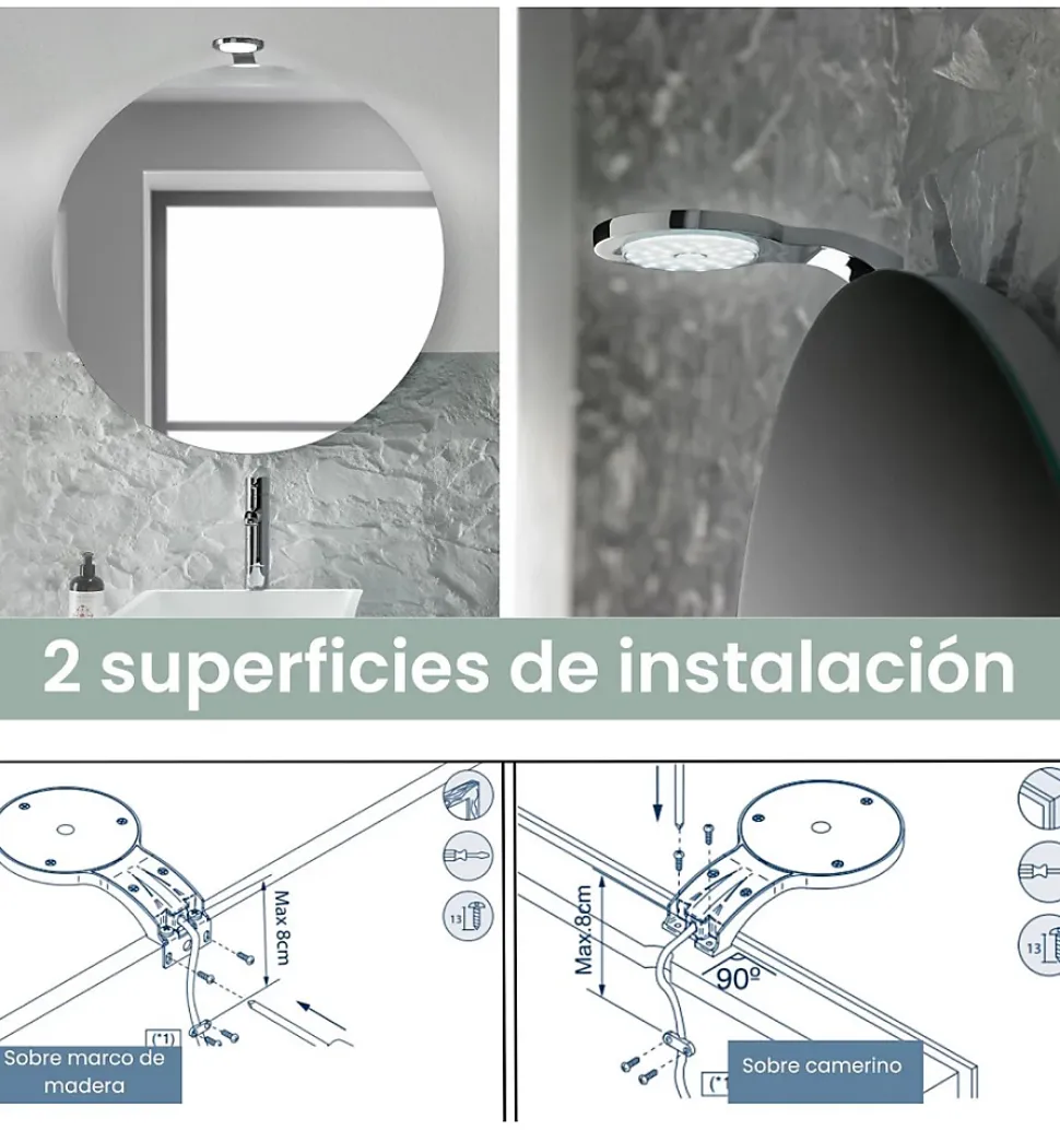 Applique LED pour salle de bains au design moderne et élégant, parfaite pour les activités quotidiennes. Fabriquée en aluminium chromé, résistante aux éclaboussures et à la vapeur, elle a été testée pour garantir une qualité et une durabilité maximales. Dotée d’une lumière LED de 6W, elle fournit un éclairage blanc brillant et contribue à réduire la consommation d’énergie. Applique murale de 9 cm émettant 361 lumens et fournissant une lumière blanche neutre de 5700K. Facile à installer, elle comprend tous les accessoires nécessaires pour être placée dans les vestiaires, les cadres en bois ou les murs. Garantie de 5 ans et indice de protection IP44, avec un emballage sécurisé qui a passé des tests d’endurance.