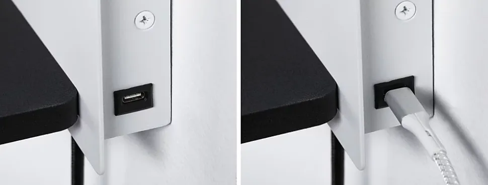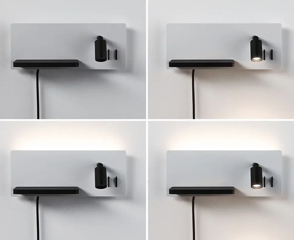 Avec son look noir et blanc moderne, la liseuse murale Serra pour le côté droit du lit allie esthétique et fonctionnalité pour créer une ambiance agréable dans chaque pièce. Et ce n’est pas tout : avec sa prise USB-C latérale pour un chargement rapide et sa surface de rangement, elle offre une plus-value pratique en permettant d’y poser et recharger le smartphone ou la tablette directement sur la lampe. La tête orientable de la lampe garantit un éclairage flexible qui est idéal pour la lecture. Ce luminaire dispose de plus d’un Backlight gradable sur trois niveaux d’intensité, qui diffuse un éclairage d’ambiance discret sur le mur. Idéale pour un placement à côté du lit, la liseuse murale Serra est disponible dans une version pour le côté droit et gauche du lit. Un commutateur sur le luminaire permet une utilisation simple. L’équipement prêt à l’emploi avec un câble textile de haute qualité (longueur 1,2 m) accélère et facilite la pose au mur. Le câble textile est amovible et permet un raccordement direct à la prise électrique.