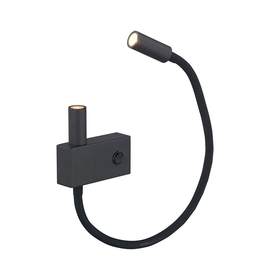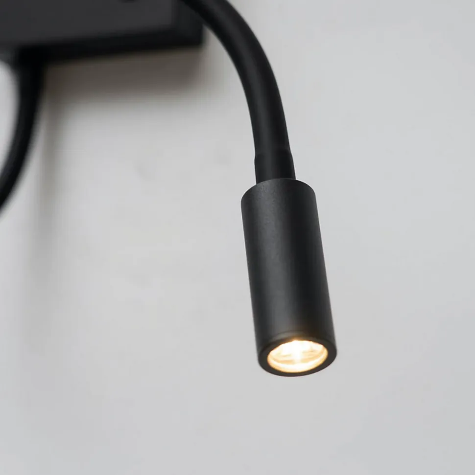 Nanda est une applique murale polyvalente dotée d’une fonction liseuse. Sa tête ajustable vers le haut diffuse une lumière ambiante, tandis que l’autre orientable vers le bas offre un éclairage idéal pour la lecture. Son design moderne avec un câble noir en fait un élément décoratif attrayant.) Livré monté, prêt à installer (