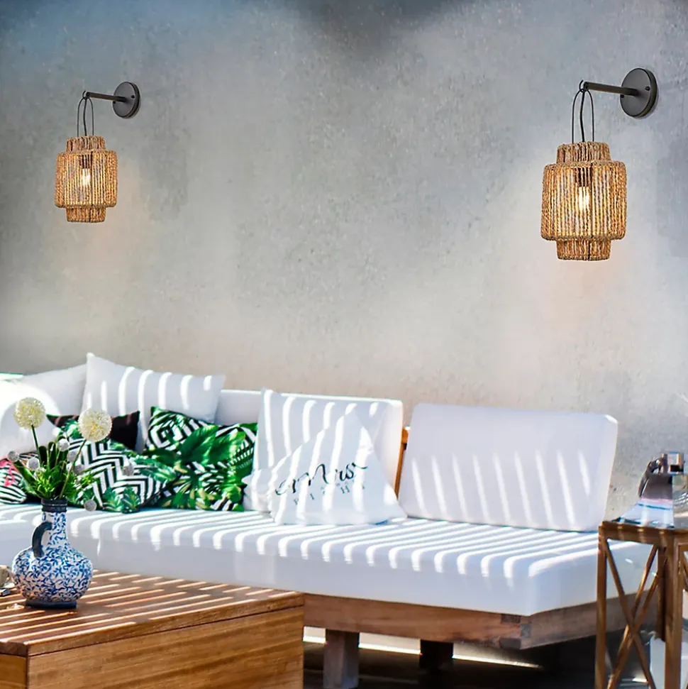 Applique métal et jacinthe naturel Cancun E27 15W IP44 L.20 x l.30 x H.23 x P.30 cm