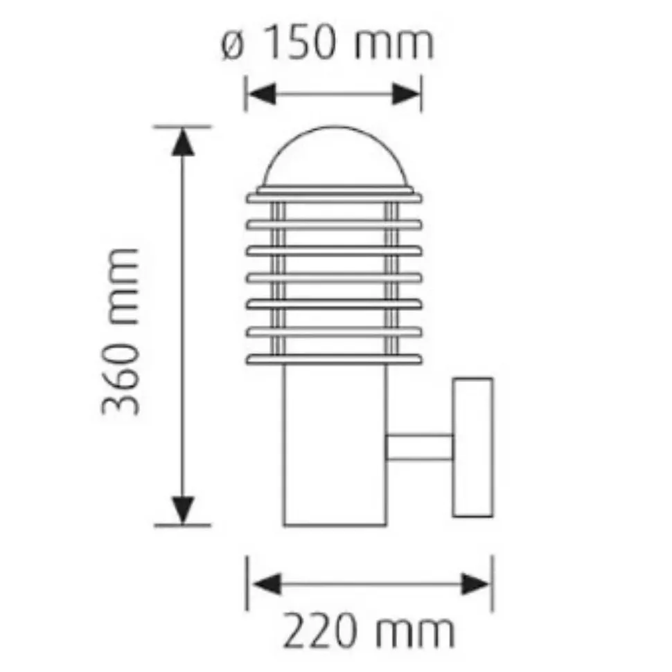 L’applique montante Hawaï-D 60W Dim. 360x150x220mm permet d’éclairer et de sécuriser l’accès à votre habitation. Vous apporterez également une touche design à la façade de votre maison. Son corps est en acier inoxydable et son diffuseur en polycarbonate. L’indice de protection IP44 assure que le produit est : Protégé contre l’intrusion de corps solides supérieurs à 1 mm. Protégé contre les petites projections d’eau venant de toutes directions. Les produits dotés d’un indice de protection IP44 sont destinés à une installation intérieur ou extérieur protégée, sous abri. Cette applique est compatible avec des ampoules de classe énergétique allant de A++ à C. La puissance maximum est de 60W pour une ampoule incandescente. Vous pouvez donc installé une ampoule Fluocompacte ou LED équivalente à 60W (12W FLC et 8W LED). Produit conforme à la norme CE, à la directive RoHS et DEEE.