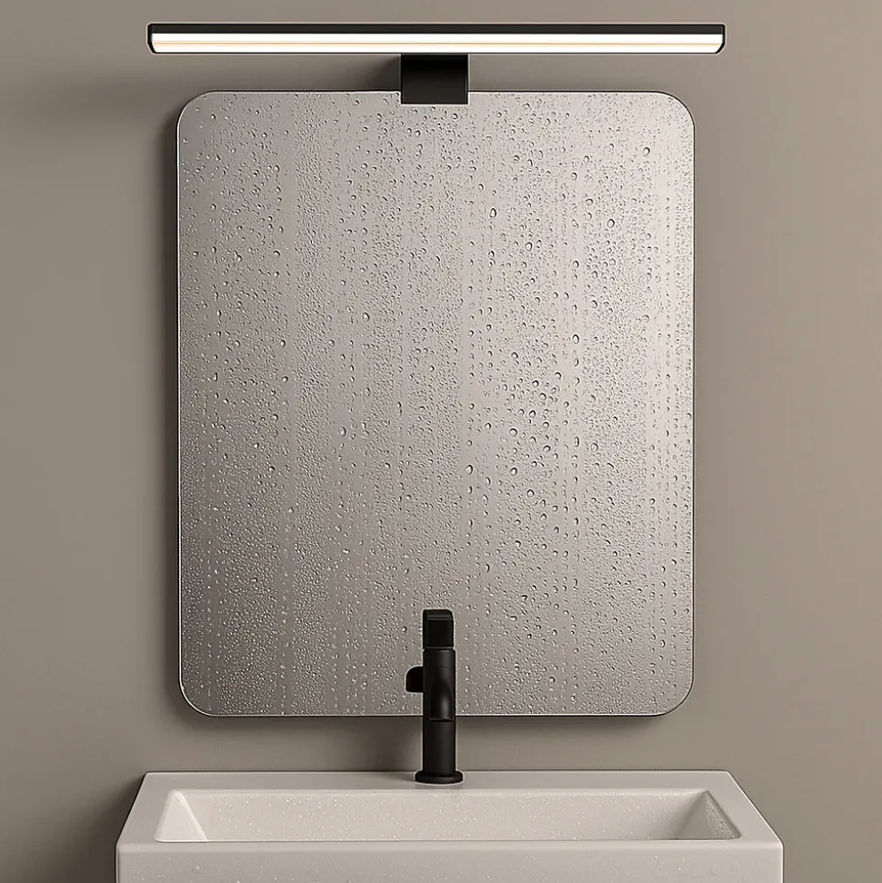 Applique LED pour miroir de salle de bain – 50 cm, 12W, 1260 lm, IP44, installation polyvalente (miroir, meuble ou mur) Cet applique LED de 50 cm de large offre un éclairage puissant, uniforme et fonctionnel, idéal pour des tâches comme le maquillage, le rasage ou le lavage. Son design moderne et minimaliste en fait une solution parfaite pour les salles de bain contemporaines. Grâce à sa polyvalence d’installation, il peut être installé sur le miroir, sur des meubles ou directement sur le mur. Fabriqué en aluminium et en polycarbonate de haute qualité, il est résistant à l’humidité, aux éclaboussures d’eau, à la poussière et à la saleté, grâce à sa protection IP44, ce qui le rend particulièrement adapté aux environnements de salle de bain. Caractéristiques principales : Dimensions : 50 cm de largeur (500 x 112 x 44 mm) Puissance : 12W – 1260 lumens Température de couleur : 4000K (blanc neutre) CRI > 80 : Haute fidélité des couleurs Protection IP44 : Résistant à l’humidité et à la poussière Angle d’ouverture : 120° Installation rapide sans transformateur supplémentaire Matériaux : Corps : Aluminium Diffuseur : Polycarbonate / Plastique acrylique résistant Options d’installation (3 en 1) : Sur le miroir : via une fente intégrée à la base. Sur le meuble : fixation par vis avec support horizontal. Au mur : avec support mural inclus. Avantages du produit : Taille idéale de 50 cm pour une couverture optimale sur le miroir. Éclairage LED efficace avec puce SMD2835. Design moderne et discret qui s’adapte à toutes les salles de bain. Lumière claire et uniforme, idéale pour une utilisation quotidienne. Installation facile avec tous les accessoires inclus. Parfait pour être placé au-dessus du miroir et profiter d’un éclairage intense, clair et à faible consommation.