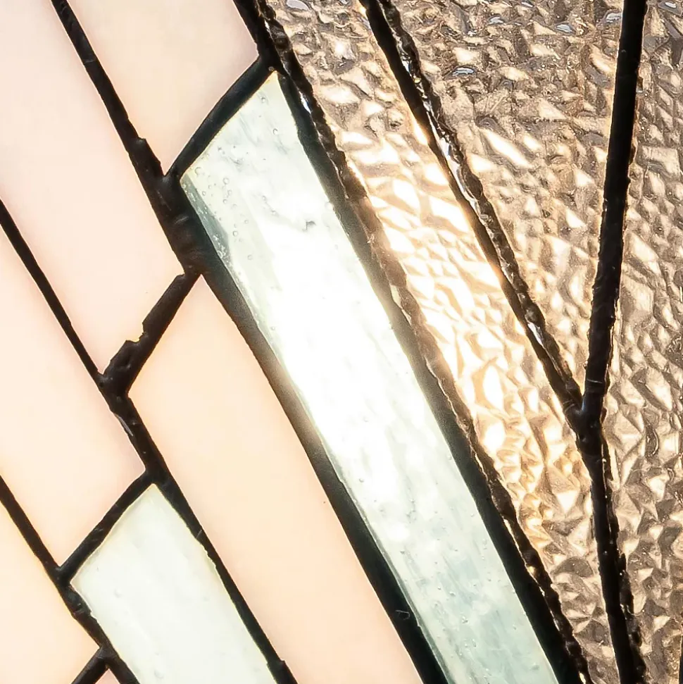 Apportant une simplicité moderne à l’éclairage en verre art déco de style Tiffany, la famille Alderley se caractérise par des lignes droites précises et une palette de couleurs raffinée. Lorsqu’elles sont allumées, les panneaux bleus prennent une magnifique teinte turquoise et les panneaux texturés étincellent simplement. Les composants métalliques de ces produits sont finis avec un riche bronze vieilli et présentent un style classique art déco.