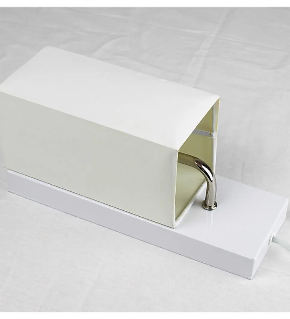 Applique murale 1 spot abat-jour blanc et socle en métal blanc.Cette applique murale avec un abat-jour blanc sera une source discrète de lumière pour votre intérieur.Cette applique abat-jour blanc trouvera parfaitement sa place au-dessus de votre lit ou dans un couloir.L’applique mural est équipée d’un câble d’alimentation avec un interrupteur marche / arrêt.Descriptif :Couleur : BlancMatériau : métal et papierUsages spécifiques : Usage intérieur uniquementDimensions (H x L x P) : 25 x 9 x 12 cmPoids : 490 gCaractéristiques techniques :Type d’ampoule compatible : Halogène 28 W / CFL 32 WType de culot : E14Ampoule incluse : NonPuissance : 7 Watts maxiVolt : 220/230Branchement : prise électrique muni d’un interrupteur marche / arrêtOptez pour l’ élégance de cette ligne cubique sobre mais design apportée par le socle en métal alu.Cette applique murale avec abat-jour blanc tamisera la lumière pour une ambiance douce et cosy. Aucune installation électrique n’est requise puisqu?il suffit de brancher le cordon électrique sur vos prises électriques murales