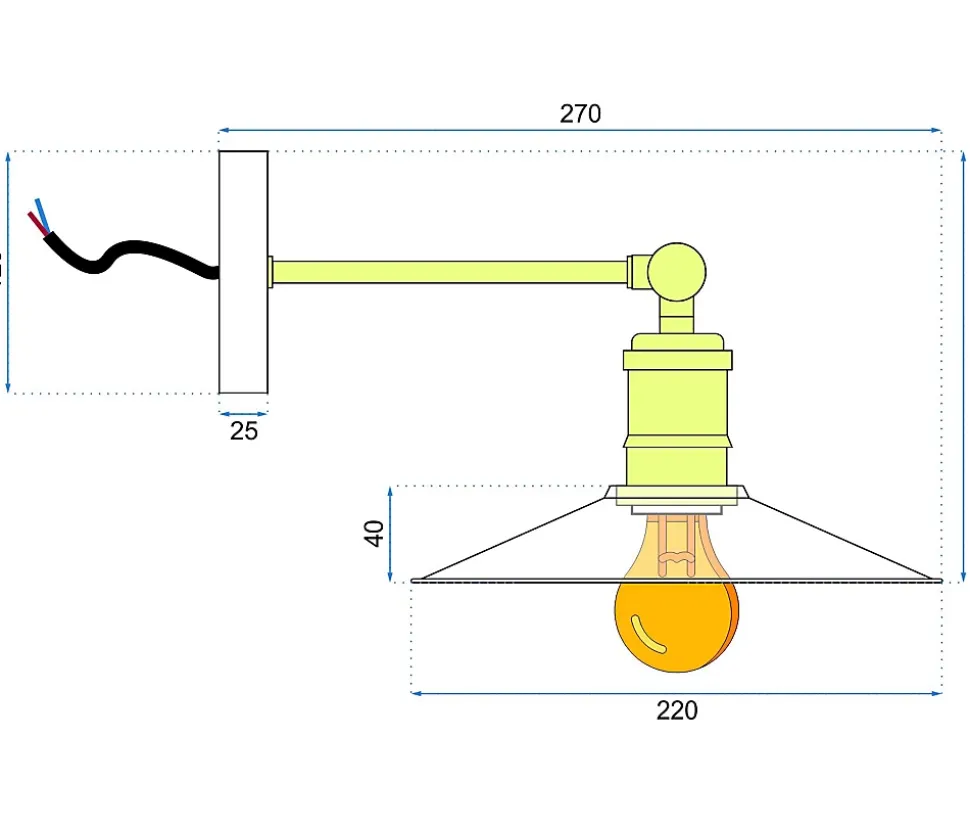 Šviestuvas pagamintas iš metalo su grotelėmis. Šviestuvas turi tradicinį E27 sriegį, naudojamą daugumoje lempų.Porto šviestuvas gali būti naudojama ne tik kaip sieninė, bet ir kaip lubinė .