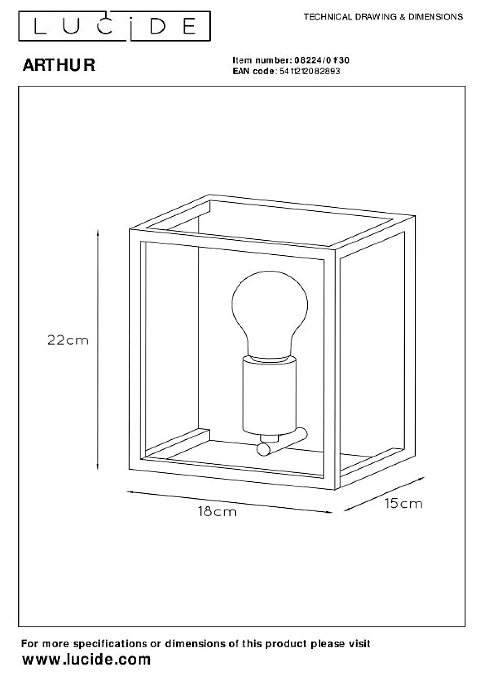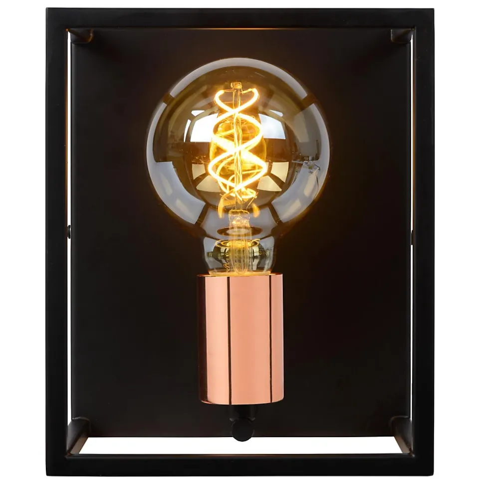 Mur carré, lampe cubique. De par sa forme, l’applique murale Arthur fait écho à la pièce tout en y apportant une élégance sobre. Ce dispositif d’éclairage compact s’installe facilement au mur avec une plaque de montage solide. Le support de l’ampoule, un court trait noir, soutient le raccord en cuivre. Pour une atmosphère vraiment belle, nous vous conseillons de combiner le design moderne de l’applique murale Arthur à la chaude lumière d’une ampoule vintage, modulable via un régulateur d’intensité lumineuse (non fourni).Caractéristiques uniques:• Utilisable avec une source lumineuse LED• Facile à connecter à un variateur (non fourni)• Fabriqué en métalPrincipales caractéristiques du produit:• Consommation énergétique: 1x60W / 230V / A intensité variable (Ampoule non incluse)• Dimensions: Lon.18 x Larg.15 x Haut.22 cm• 2 Ans garantie sur le luminaire / source de lumière appropriée est EAN: 5411212491046Pourquoi choisir l’éclairage Lucide?Lucide incarne un design innovant, un savoir-faire artisanal et une fiabilité exemplaire. En tant qu’entreprise familiale belge avec plus de trois décennies d’expertise, nous concevons des éclairages de haute qualité qui enrichissent et transforment chaque espace, tant intérieur qu’extérieur. Notre collection polyvalente comprend des luminaires durables et des sources lumineuses économes en énergie, soigneusement conçus par nos propres experts et fabriqués selon les normes CE les plus strictes. Grâce à notre large gamme, nous vous proposons toujours une solution d’éclairage adaptée, quel que soit le style ou l’espace. Ainsi, nous illuminons non seulement votre espace de vie mais aussi votre processus de choix dans la recherche d’un éclairage de qualité et abordable. Chez Lucide, nous combinons innovation et savoir-faire pour un éclairage qui ajoute non seulement de l’ambiance, mais transforme chaque maison en foyer.