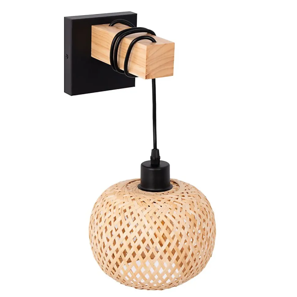 Lapplique murale HANA fusionne design et qualité avec une base en métal noir un support en bois et un abat-jour artisanal en osier. Son treillis original crée des jeux de lumières et dombres générant des ambiances chaleureuses. La combinaison de fibres naturelles de bois et de métal noir confère une polyvalence pour sadapter à différents styles de décoration. Lapplique murale HANA fusionne design et qualité avec une base en métal noir un support en bois et un abat-jour artisanal en osier. Son treillis original crée des jeux de lumières et dombres générant des ambiances chaleureuses. La combinaison de fibres naturelles de bois et de métal noir confère une polyvalence pour sadapter à différents styles de décoration.