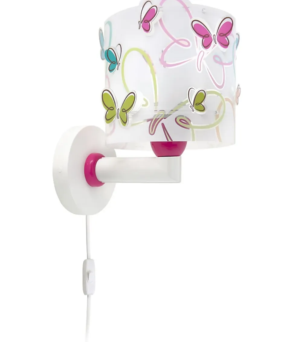 Acheter applique murale avec papillons ButterflyIl s’agit de notre applique murale pour enfants avec des papillons colorés découpés à l’emporte-pièce, de forme semi-circulaire et une installation directe au courant ou en utilisant le câble avec l’interrupteur inclus. Il comprend un diffuseur de lumière inférieur pour éviter l’éblouissement et est fabriqué en polypropylène transparent.