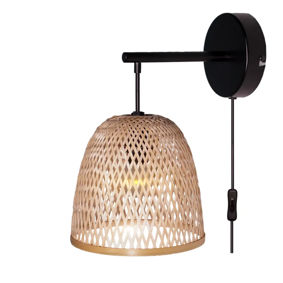 Applique murale Calume E14 28W ⌀24xL.188xH.31cm métal noir et fibre naturelle GoodHome