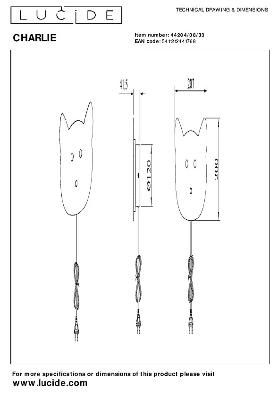 Laissez vos enfants s’évader dans un univers de rêve avec ces adorables personnages. Charlie est une applique murale unique, avec différentes formes. En forme d’animal, cette lampe est équipée d’une LED intégrée et dimmable, offrant une lumière blanche extra chaude. Grace à son capteur tactile, votre enfant pourra ajuster lui-même l’éclairage de sa chambre. Conçue en métal de haute qualité, Charlie garantit une utilisation sûre dans n’importe quelle chambre d’enfant. Que vous soyez petit ou un peu plus grand, avec Charlie à vos côtés, vous passerez des nuits paisibles. Bonne nuit !Caractéristiques uniques:• Équipé d’une lampe LED intégrée à intensité variable• Dispose d’une lumière blanche chaude (2700K)• Avec capteur tactile sur la lampe à intensité variable• Fabriqué en métalPrincipales caractéristiques du produit:• Specialement concu pour une utilisation dans une chambre d’enfant• Consommation énergétique: 1x7W / 230V / A intensité variable (Ampoule incluse)• Dimensions: Lon.20,7 x Larg.4,2 x Haut.20 cm• 3 Ans garantie sur le luminairePourquoi choisir l’éclairage Lucide?Lucide incarne un design innovant, un savoir-faire artisanal et une fiabilité exemplaire. En tant qu’entreprise familiale belge avec plus de trois décennies d’expertise, nous concevons des éclairages de haute qualité qui enrichissent et transforment chaque espace, tant intérieur qu’extérieur. Notre collection polyvalente comprend des luminaires durables et des sources lumineuses économes en énergie, soigneusement conçus par nos propres experts et fabriqués selon les normes CE les plus strictes. Grâce à notre large gamme, nous vous proposons toujours une solution d’éclairage adaptée, quel que soit le style ou l’espace. Ainsi, nous illuminons non seulement votre espace de vie mais aussi votre processus de choix dans la recherche d’un éclairage de qualité et abordable. Chez Lucide, nous combinons innovation et savo…
