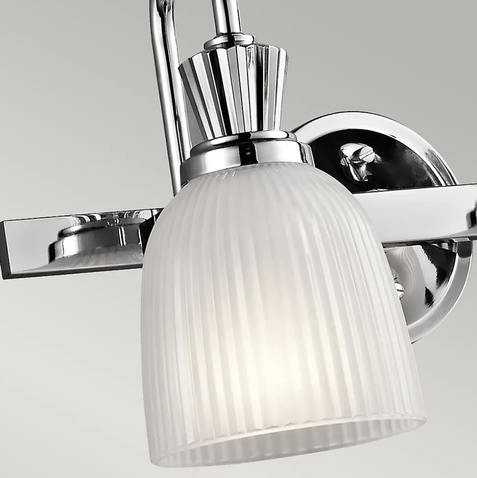 La collection classique Cora utilise des lampes LED et présente des courbes gracieuses et des lignes épurées qui ajoutent juste ce qu’il faut à son style modernisé. Le verre strié transparent en forme de cloche avec une gravure intérieure flotte magnifiquement sur les supports en chrome poli.