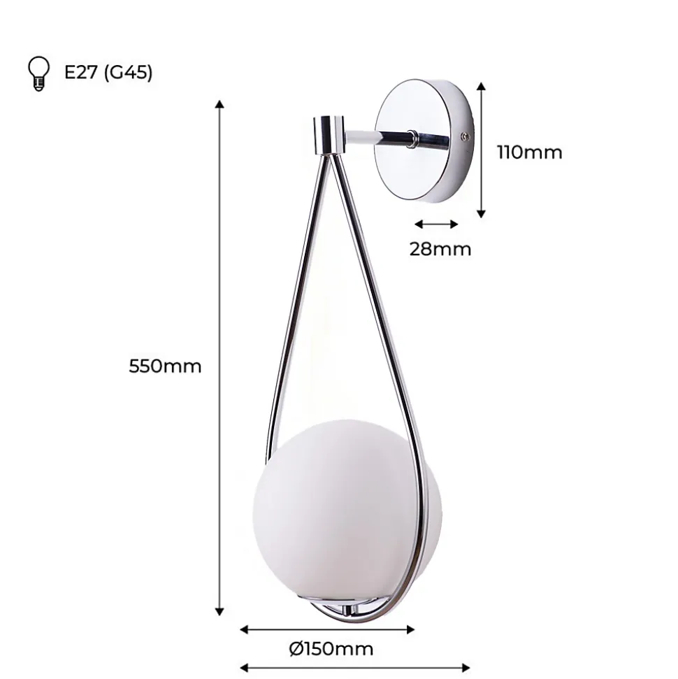 Applique Murale Goutte avec Sphère en Verre Opalin et Rosace Métallique Dorée ou Noire Laissez-vous séduire par lélégance unique de lApplique Murale Goutte. Sa sphère en verre opalin et la rosace métallique en doré ou noir créent un design exquis et minimaliste. Adaptable à tous les styles elle diffuse une lumière brillante et douce pour une ambiance chaleureuse et apaisante. Caractéristiques Distinctives Sphère en verre opalin pour une lumière enveloppante et brillante. Design exclusif avec rosace et support métallique suspendu. Grande polyvalence pour sadapter à tous les styles de décoration. Éclairage brillant et diffus pour une ambiance accueillante. Compatible avec les ampoules E27 G45 pour personnaliser votre éclairage. Description Exclusive Laissez lApplique Murale Goutte transformer votre espace avec son élégance unique. Sa sphère en verre opalin et la rosace avec support métallique suspendu doré ou noir créent un design raffiné et minimaliste. De lintérieur classique au contemporain cet applique sadapte facilement offrant une lumière brillante et douce qui enveloppe lespace dune atmosphère relaxante et chaleureuse. Personnalisez votre expérience lumineuse avec des ampoules E27 G45. Caractéristiques Distinctives Sphère en verre opalin pour une lumière enveloppante et brillante. Design exclusif avec rosace et support métallique suspendu. Grande polyvalence pour sadapter à tous les styles de décoration. Éclairage brillant et diffus pour une ambiance accueillante. Compatible avec les ampoules E27 G45 pour personnaliser votre éclairage. Fiche Technique Nom du produit Applique Murale Goutte Matériau Verre et Aluminium Type de douille E27 Puissance maximale 40W Dimensions Diamètre de la sphère en verre 15 cm Couleurs disponibles Doré Chromé et Noir Usage intérieur IP20