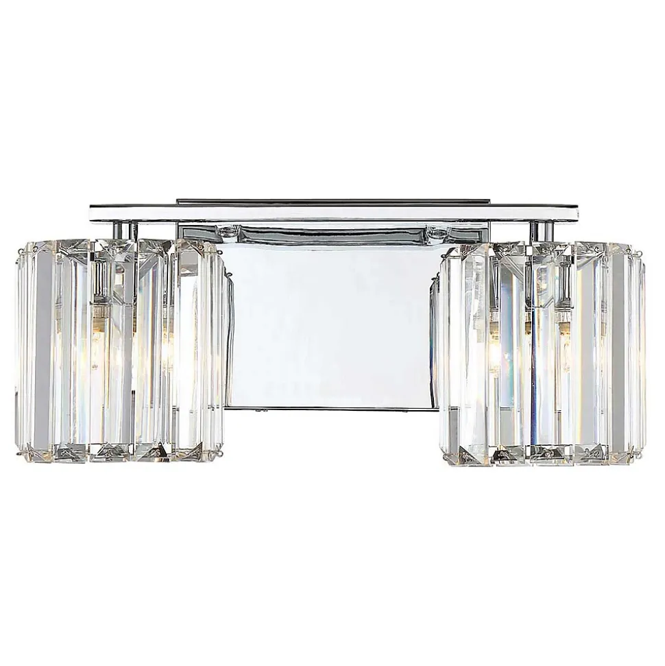 L’applique murale Divine 2 lumières est d’une sophistication exquise. La plaque arrière simple brille en chrome poli et reflète chaque coupe et chaque éclat du verre de cristal. Le verre réfracteur est disposé en lamelles épinglées en haut et en bas pour former un abat-jour autour de l’ampoule LED. Elle est classée IP44 pour la salle de bains.
