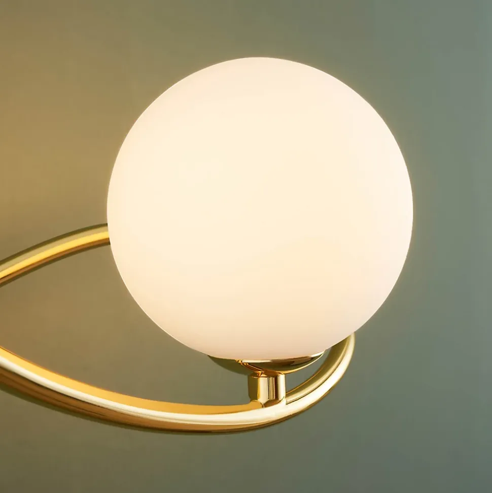 L’applique murale Novale est conçue en métal et en verre, avec une structure en forme de vague infinie reposant sur un socle rond élégant. De chaque côté, deux petites sphères en verre blanc couvrent les emplacements pour des ampoules à culot G9 (non fournies). Son design intemporel permet à cette applique de s’adapter aussi bien aux intérieurs modernes qu’aux plus classiques. Elle combine habilement une esthétique moderne avec une touche artistique. Les boules en verre blanc diffusent une lumière douce et chaleureuse, créant une atmosphère accueillante dans les salons, chambres ou couloirs.) Assemblage simple requis (