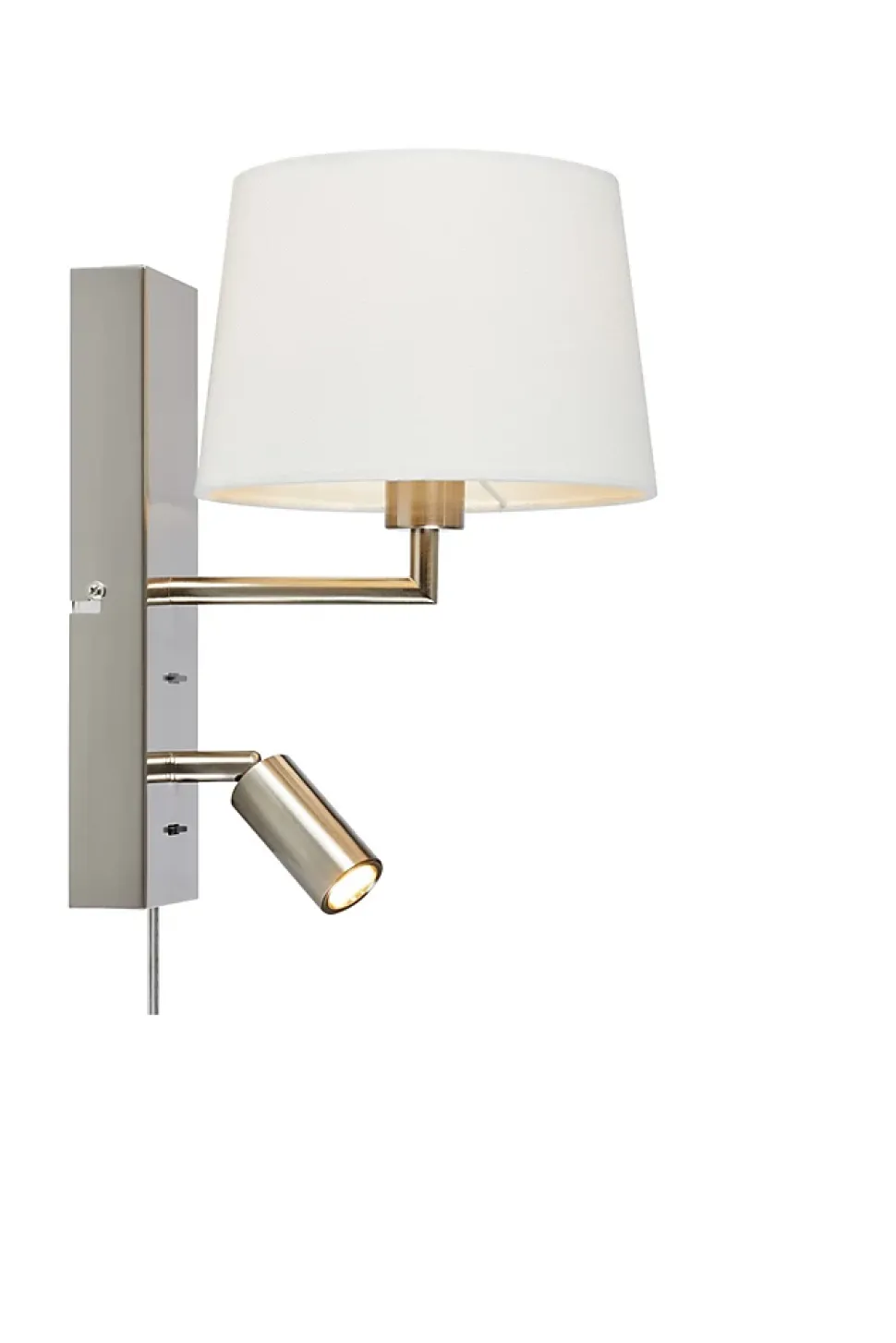 Un éclairage double fonction au design clair et élégantL’applique Como acier/blanc de Markslöjd séduit par son style épuré et sa double fonctionnalité. Elle combine une lumière d’ambiance douce, idéale pour les espaces détente, avec une lampe de lecture orientable intégrée pour un confort optimal dans la chambre, le salon ou le coin lecture.Sa structure en acier apporte une touche contemporaine, tandis que l’abat-jour en lin blanc diffuse une lumière chaude (3000 K) agréable et apaisante.Le spot LED de 3 W, intégré sous l’abat-jour, offre un éclairage précis pour lire ou travailler sans déranger l’entourage. Deux interrupteurs indépendants situés sur la base permettent de gérer séparément chaque source lumineuse.Pratique, discret et rapide à installerAvec son boîtier de jonction intégré et son support mural discret, l’installation est simple et modulable. Le câble transparent de 2 mètres permet une intégration élégante dans tous les intérieurs modernes.Que ce soit pour créer une ambiance chaleureuse ou pour profiter d’un éclairage fonctionnel, l’applique Como répond à tous vos besoins avec style.