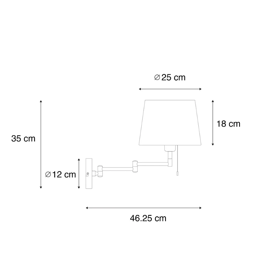Ladas est une applique murale moderne classique pour le salon, la chambre à coucher ou le bureau. Son bras orientable vous permet de décider où la lumière brille, très pratique ! L’applique est en acier avec un abat-jour en tissu blanc. Elle mesure 35 cm de haut, 25 cm de long et 46,3 cm de large. L’abat-jour a un diamètre de 25 cm et une hauteur de 18 cm. La plaque de montage a un diamètre de 12 cm et une épaisseur de 2,5 cm. Vous pouvez compléter votre Ladas avec une ampoule à culot E27 (40W), à commander séparément. L’applique est dimmable avec un variateur externe, qui n’est toutefois pas inclus. Ladas est un magnifique complément à votre intérieur et ne doit pas être manqué !