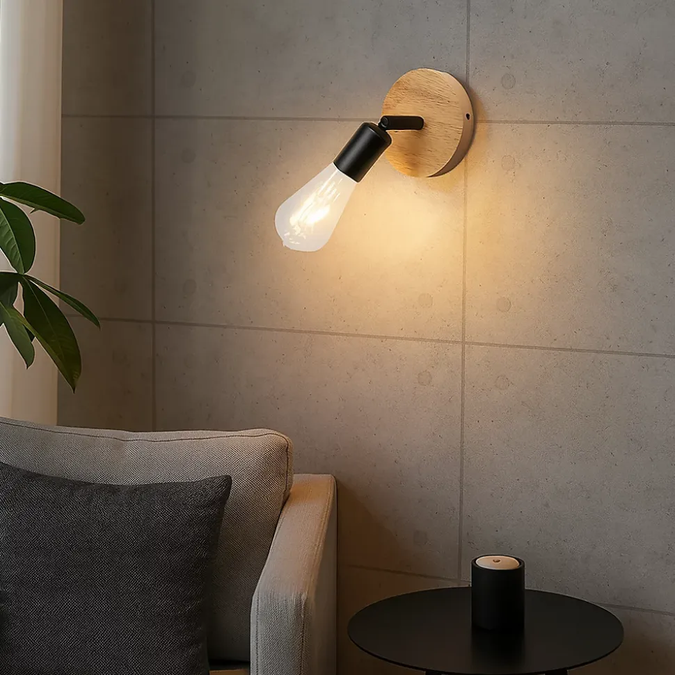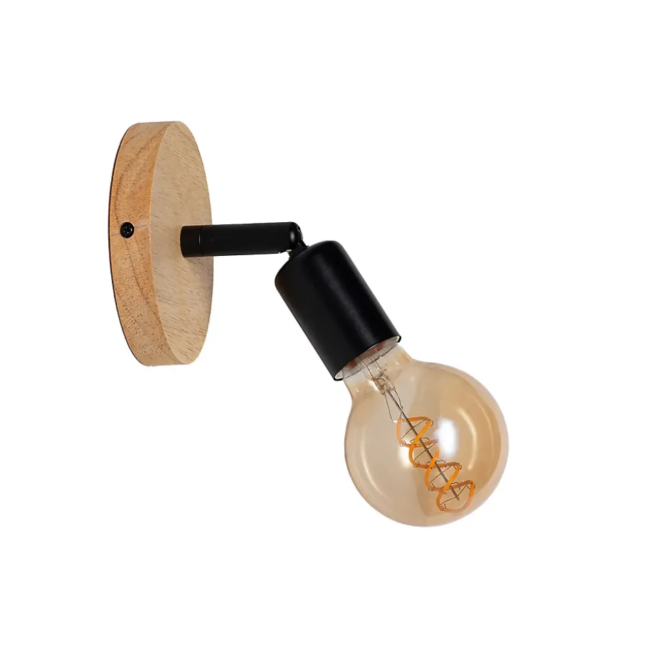 Design moderne et naturel : l’alliance d’un socle en bois massif et d’une structure en métal blanc ou noir s’intègre parfaitement aux intérieurs contemporains, nordiques ou minimalistes.Tête orientable : permet d’orienter la lumière selon vos besoins, idéale comme lampe de lecture, éclairage d’accentuation ou lumière d’ambiance.Douille E27 standard : compatible avec les ampoules LED, décoratives ou de type Edison (ampoule non fournie), offrant une totale liberté dans le choix de l’intensité et de la température de couleur.Éclairage fonctionnel et décoratif : diffuse une lumière ciblée sans compromettre l’élégance du design, même éteint.Installation murale facile : raccordement direct à la prise électrique, sans câble apparent, pour une finition impeccable.Dimensions compactes :Socle en bois : Ø 12 cmBras : 6,5 cmDouille : 6 cmUtilisation polyvalente : idéale pour les chambres, les salons, les couloirs, les bureaux, les têtes de lit ou les coins lecture.