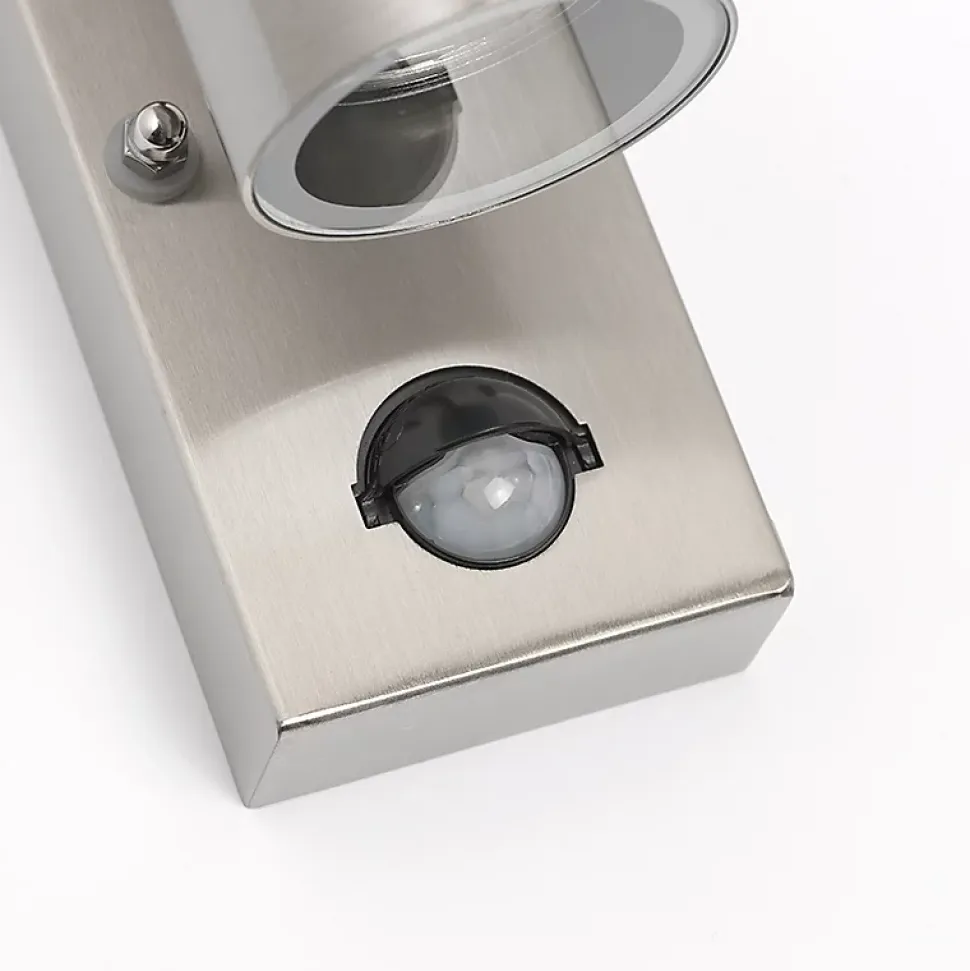 Cette applique murale Duo en acier inoxydable est une lampe d’extérieur super fonctionnelle au design élégant et dotée d’un détecteur de mouvement. Vous ne chercherez plus jamais vos clés de maison dans le noir. Duo réagit aux mouvements en allumant les lumières. La lumière éclaire vers le haut et vers le bas, créant un bel effet sur le mur. Avec un indice de protection IP44, cette applique murale peut résister à la pluie. Elle se connecte facilement à 230 volts. La lampe mesure 10,5 cm de profondeur et 21 cm de hauteur, tandis que la plaque de montage mesure 14,8 cm de long et 6,7 cm de large. La lampe comporte deux douilles GU10 et n’est pas livrée avec une ampoule. Veillez donc à en commander une séparément. La lampe peut être atténuée avec un variateur externe (variateur non inclus). Cette applique murale Duo moderne et élégante sera un atout pour votre façade !