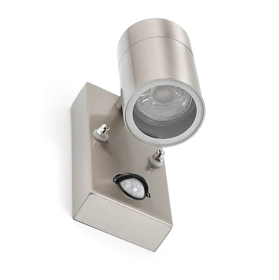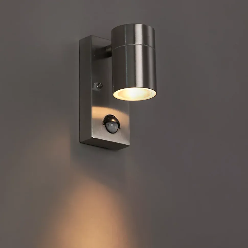 L’applique murale Solo est une lampe d’extérieur super fonctionnelle au design élégant, en acier inoxydable et équipée d’un détecteur de mouvement. Plus besoin de chercher vos clés de maison dans le noir ! Solo réagit aux mouvements en allumant la lumière. La lumière de cette lampe éclaire vers le bas, créant ainsi un bel effet sur le mur. Avec un indice de protection IP44, cette applique murale est résistante à la pluie. Elle peut également être facilement connectée à 230 volts. La lampe a une profondeur de 10,5 cm et une hauteur de 14,8 cm. La plaque de montage mesure 14,8 cm de long et 6,7 cm de large. La lampe a un culot GU10 et est livrée sans ampoule, assurez-vous donc d’en commander une (35 W maximum). La luminosité peut être atténuée à l’aide d’un variateur externe (non inclus). Cette applique murale Solo présente un design élégant, moderne et raffiné.