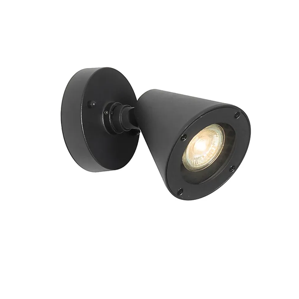 L’applique extérieure Ciara peut être fixée au mur ou au plafond. Le spot est orientable, vous permettant ainsi de choisir la direction du faisceau lumineux. Pratique ! Ciara est fabriquée en aluminium et en verre, et arbore une finition noire. Le spot mesure 12,5 cm de profondeur, 13 cm de hauteur et 10 cm de longueur. La plaque de montage a un diamètre de 10 cm et une profondeur de 2 cm. Vous pouvez compléter votre Ciara avec une ampoule GU10 de 35W maximum. N’oubliez pas de la commander séparément. Le spot est compatible avec un variateur externe (non inclus). Grâce à son indice de protection IP44 élevé, le spot est étanche aux éclaboussures et convient donc à une utilisation en extérieur ou dans la salle de bain. Créez une ambiance plus chaleureuse avec le spot Ciara !