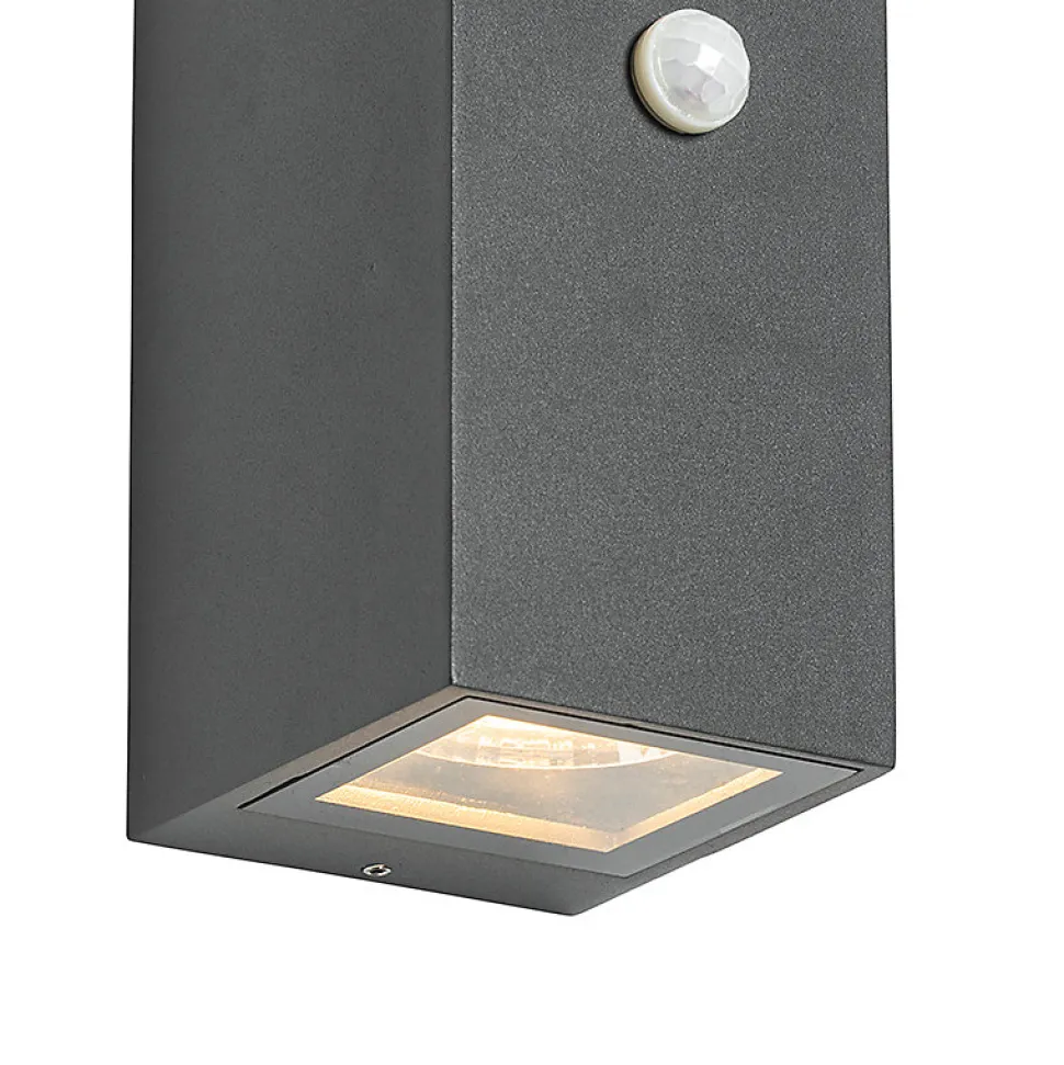 Pour un espace extérieur d’ambiance, ne cherchez pas plus loin que le Baleno II. Cette applique murale diffuse de la lumière par le haut et par le bas, créant ainsi un joli jeu de lumière sur le mur. Le Baleno II est en aluminium avec du verre et arbore une finition gris anthracite. Il mesure 10,2 cm de profondeur, 21 cm de hauteur et 8,3 cm de longueur. La plaque de montage mesure 2 cm de profondeur, 21 cm de hauteur et 8,3 cm de longueur. Complétez l’applique murale avec deux ampoules AR70, chacune avec un culot GU10 (35W maximum). N’oubliez pas de les commander séparément. Le Baleno II est doté d’un détecteur de mouvement qui permet de détecter les mouvements et d’allumer l’éclairage en cas de détection. L’éclairage s’éteindra également après le délai que vous aurez défini. L’applique murale a un indice de protection IP44 et est donc résistante aux éclaboussures. Idéale à côté de la porte d’entrée ou sur l’abri de jardin. Sécurisez votre espace extérieur avec l’applique murale Baleno II moderne.