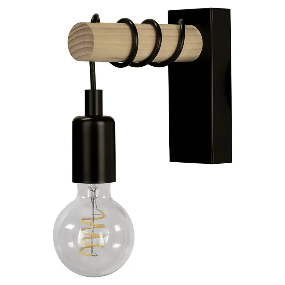 Applique murale intérieur en métal noir et effet bois E27 15W L.18,5 x l.6,5 x H.16,5cm, GoodHome Hornero