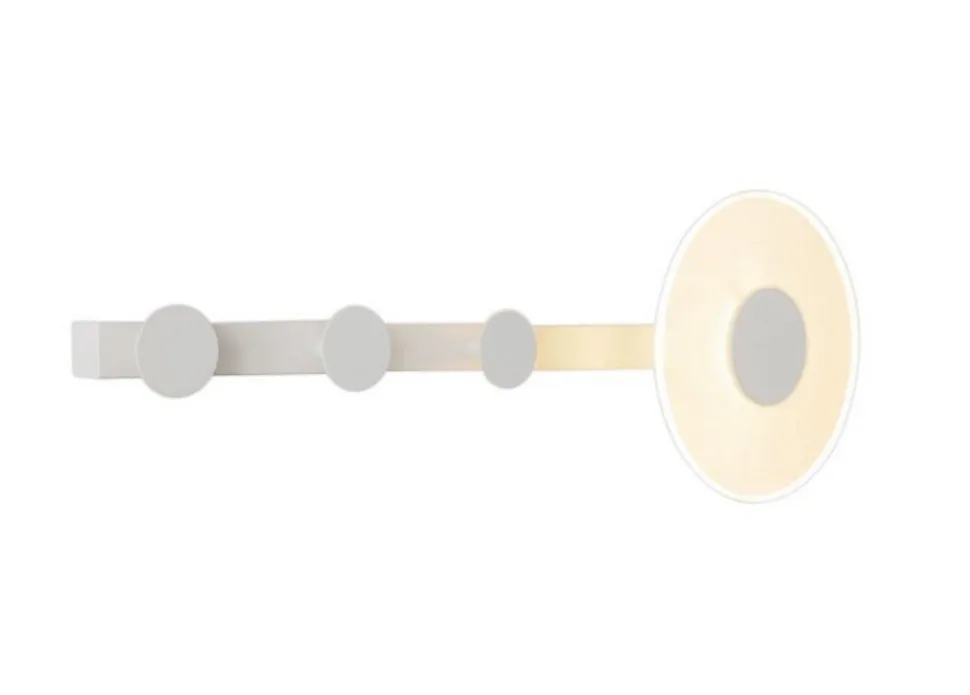 Les caractéristiques techniquesCette applique murale Led offre l’avantage d’un éclairage Led intégré. Vous n’avez donc pas à prévoir l’achat d’ampoule et votre applique intérieure Led est immédiatement fonctionnelle.L’applique Venus diffuse une agréable lumière blanc chaud (3000 kelvins) et vous procurera un éclairage efficace et apaisant avec ses 450 lumens.Pratique, elle cumule les fonctions d’éclairage et de porte-manteau.Cette applique intérieure Led est économique puisqu’elle ne consomme que 6 watts. De plus, sa durée de vie de 50.000 heures et sa structure en aluminium permettent de proposer une garantie de 5 ans.Les avantages esthétiques L’applique murale intérieure Venus a été conçue par les designers de la maison Mantra dans une optique de sobriété esthétique.Sa couleur blanche et ses lignes géométriques permettent à cette applique murale Led de s’intégrer une décoration intérieure moderne ou contemporaine.Son originalité réside dans le fait qu’elle cumule les fonctions d’éclairage et de porte-manteau.Vous pourrez installer l’applique Venus dans votre entrée, un couloir ou votre salle de bain.Venus existe en noir ou en blanc.