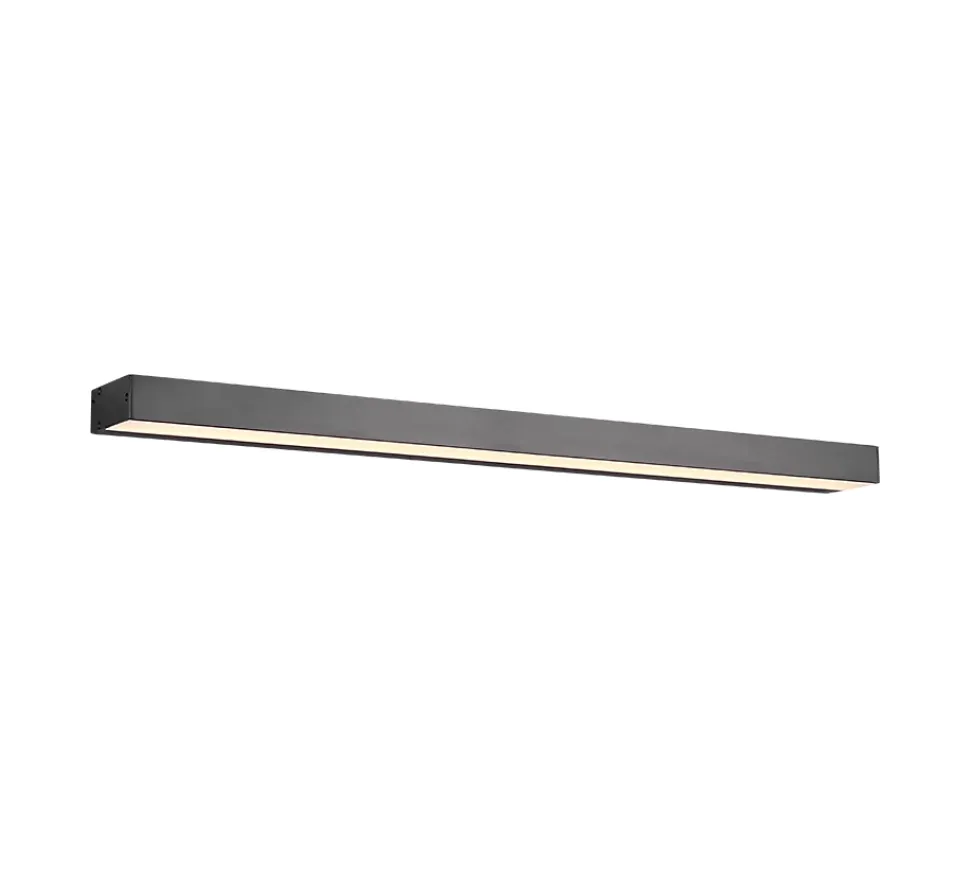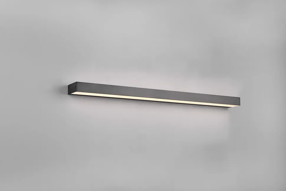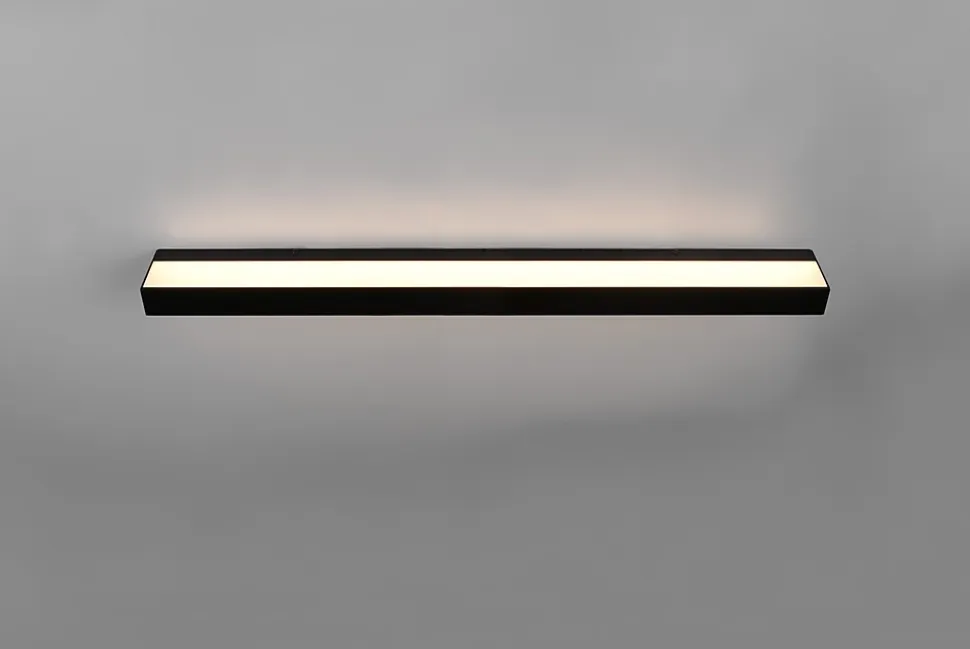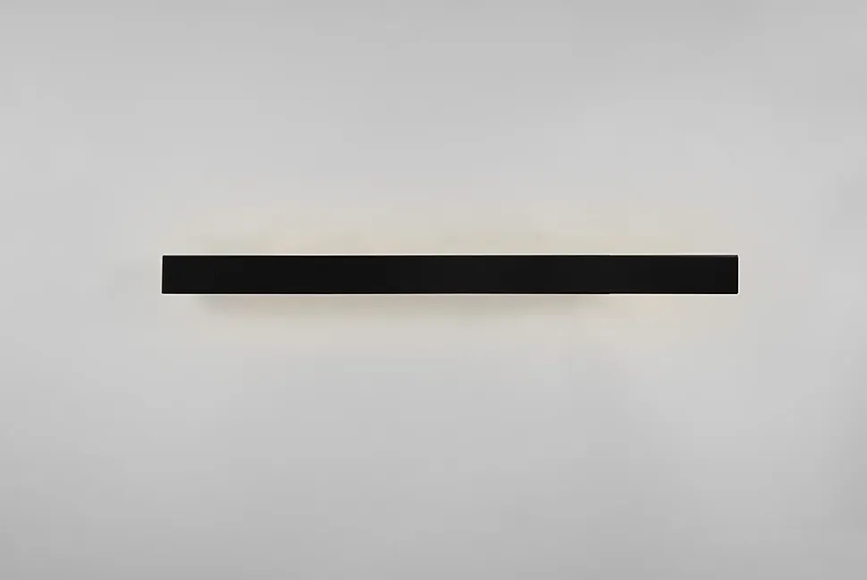 Les caractéristiques techniquesL’applique murale Rocco de Trio s’impose par son design épuré et ses lignes minimalistes. Fabriquée en aluminium noir mat avec un diffuseur acrylique blanc, elle mesure 90 cm de large pour 3,6 cm de haut, offrant un éclairage puissant et élégant, idéal pour les salles de bains grâce à son indice de protection IP44.Dotée d’une LED intégrée (13W, 1400 lumens, 3000K), elle assure une lumière agréable et homogène, tout en garantissant robustesse et sécurité (classe de protection I, IP44).Les avantages esthétiques et pratiquesCette applique séduit par son double faisceau lumineux haut et bas, créant un effet raffiné qui sublime vos murs. Parfaite pour créer une atmosphère de détente dans la salle de bain ou dans toute autre pièce où un éclairage doux est recherché.Son coloris noir mat sobre et contemporain lui permet de s’adapter facilement à différents styles d’intérieurs, tout en ajoutant une note design.Grâce à la technologie LED intégrée, la Rocco vous permet de réaliser jusqu’à 80 % d’économie d’énergie par rapport aux lampes halogènes traditionnelles. Elle offre une durée de vie de 30 000 heures, réduit la chaleur produite et contribue activement à la protection de l’environnement.