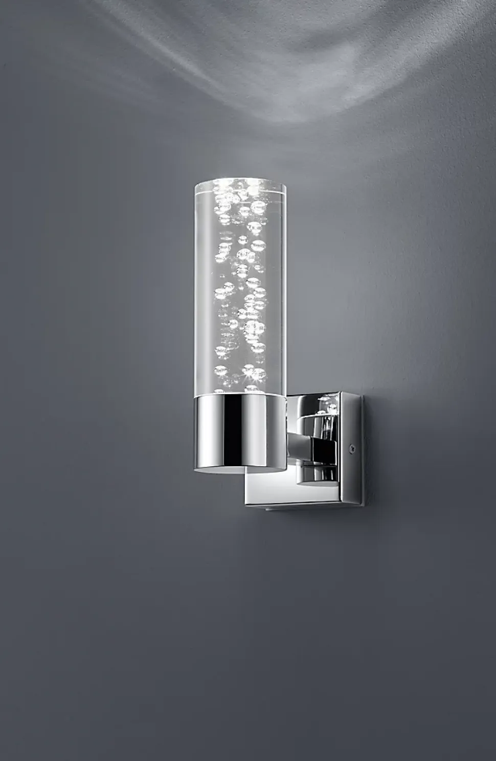 Les caractéristiques techniquesL’applique murale Bolsa de la marque Trio est équipée d’une LED SMD intégrée de 3,1 watts, offrant une puissance lumineuse de 310 lumens en lumière chaude 3000K.Avec un indice de protection IP44, elle est parfaitement adaptée à une installation dans les pièces humides comme la salle de bains.Ses dimensions compactes de 19 cm de haut et 7 cm de large en font un luminaire discret mais remarquable.Les avantages esthétiquesLe corps en métal chromé brillant associé à un diffuseur acrylique transparent à effet bulle apporte une touche moderne et élégante.Ce design soigné en fait une pièce décorative à part entière, qui rehausse l’ambiance de votre salle de bains.Grâce à la technologie LED, vous bénéficiez d’une grande efficacité énergétique et d’une longue durée de vie (jusqu’à 50 000 heures).
